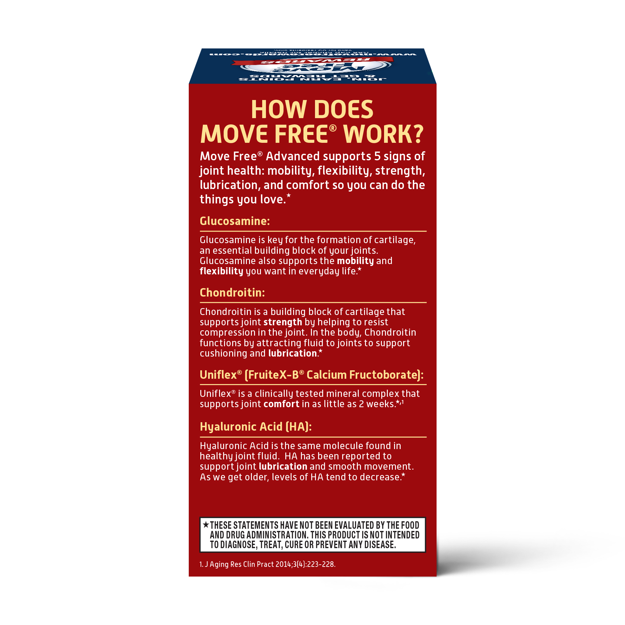 - DID YOU KNOW: Move Free Advanced Glucosamine & Chondroitin combines heritage joint support ingredients with the clinically studied mineral complex Uniflex. Uniflex has been shown to help support joint comfort in as little as 14 days.*
