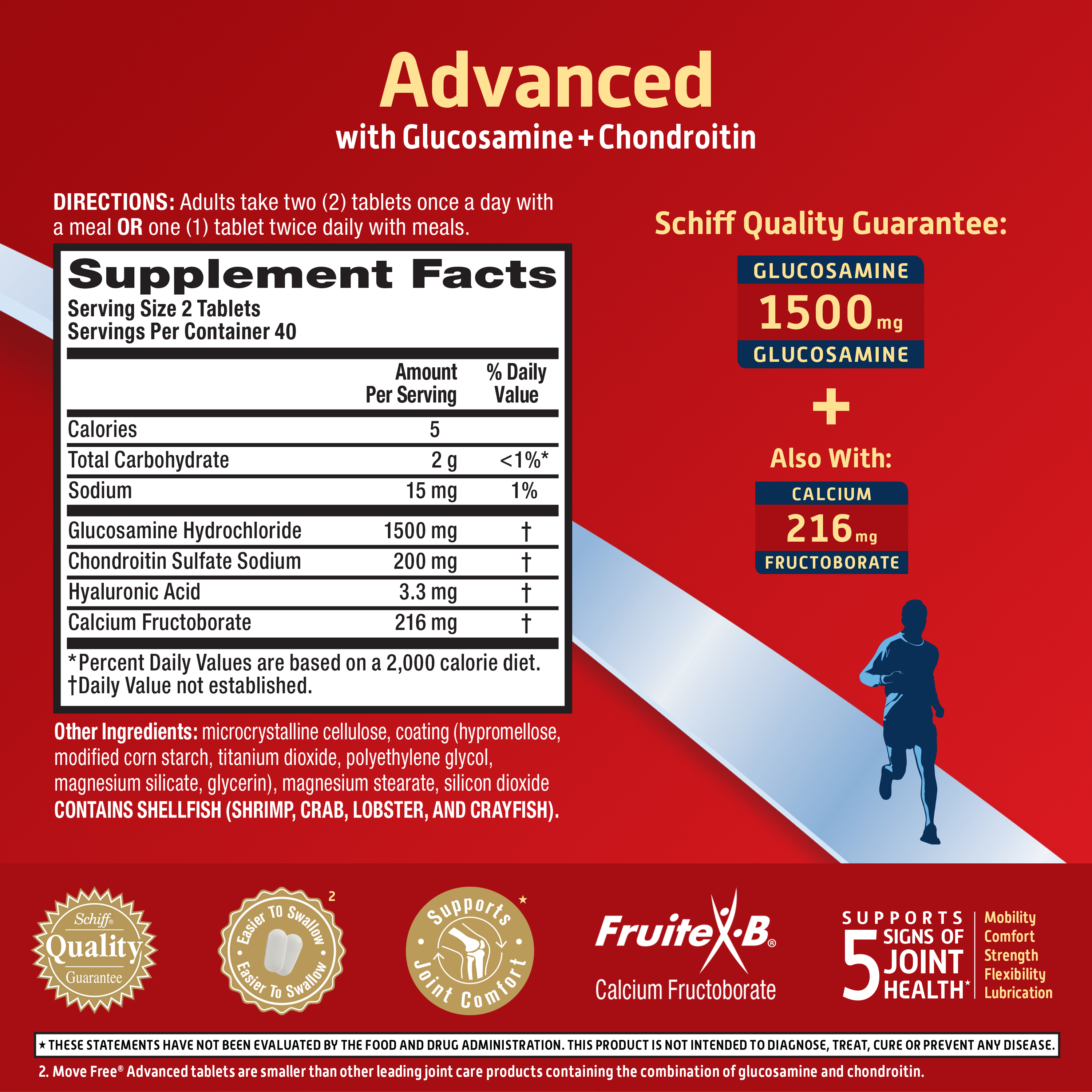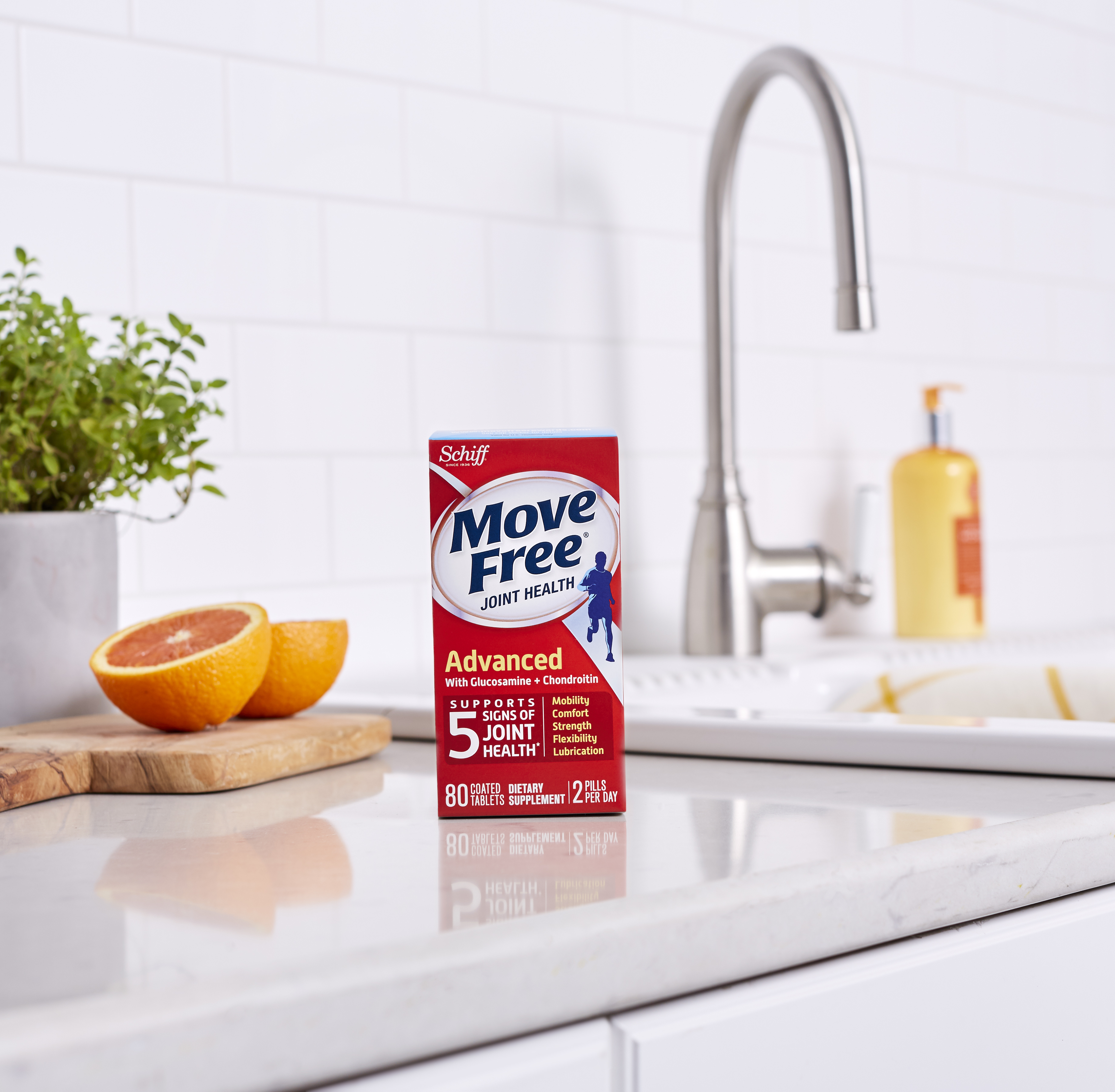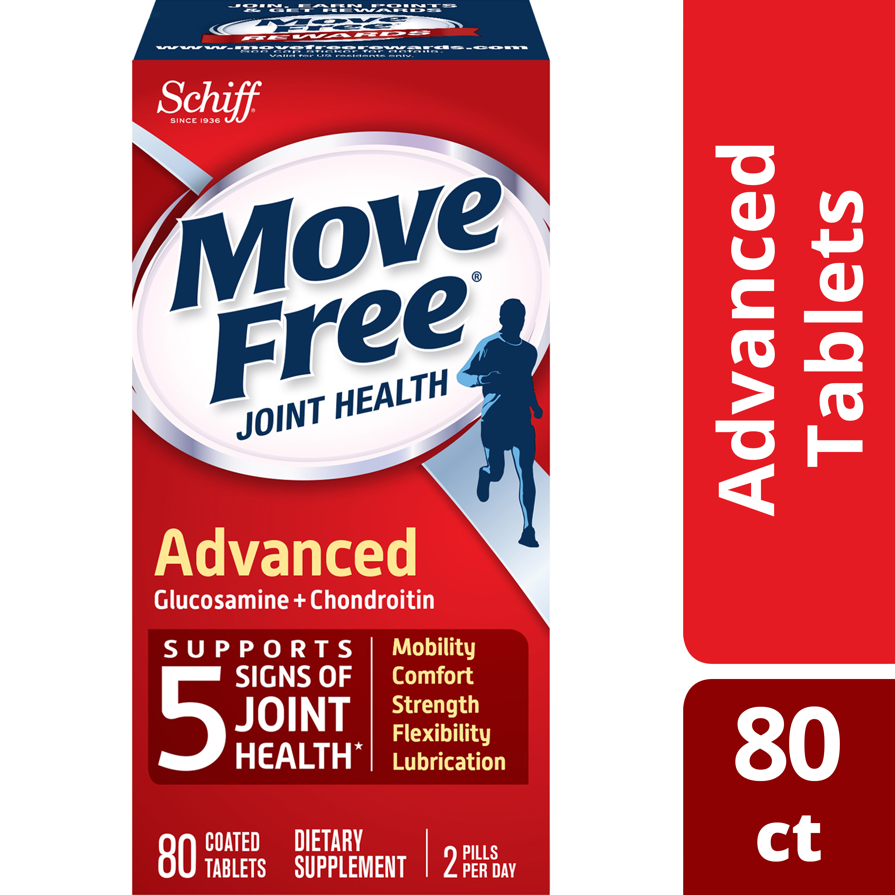 - WHAT IS IT: Move Free Advanced is a Glucosamine & Chondroitin joint supplement that supports 5 signs of joint health (mobility, flexibility, strength, lubrication and comfort)* so you can do the things you love.