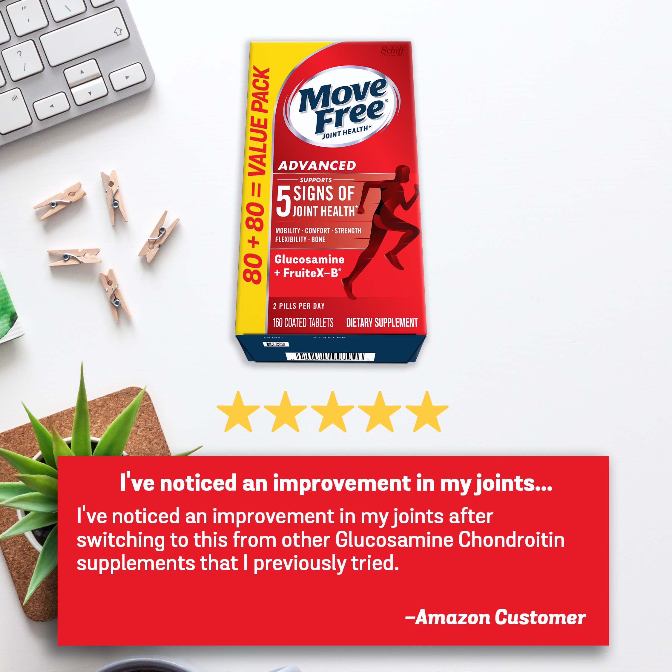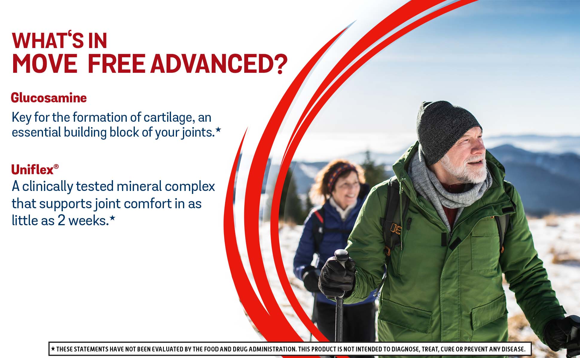 - SUPPORTS 5 SIGNS OF JOINT HEALTH: Move Free Advanced supports Mobility, Comfort, Flexibility, Bone & Muscle.*
