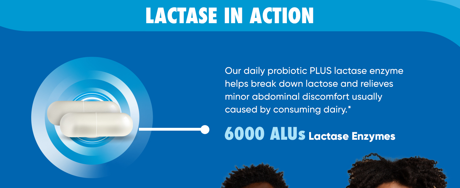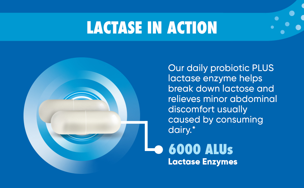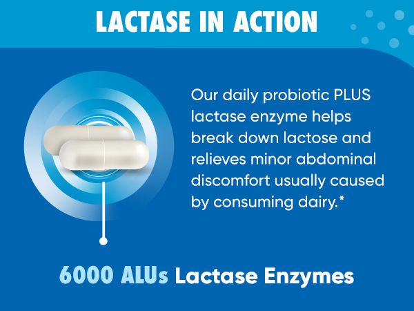 - LACTOSE PILLS: Our Daily Probiotic capsules + Lactose Support help with breakdown of lactose, immune support, occasional bloating, and minor abdominal discomfort.*
