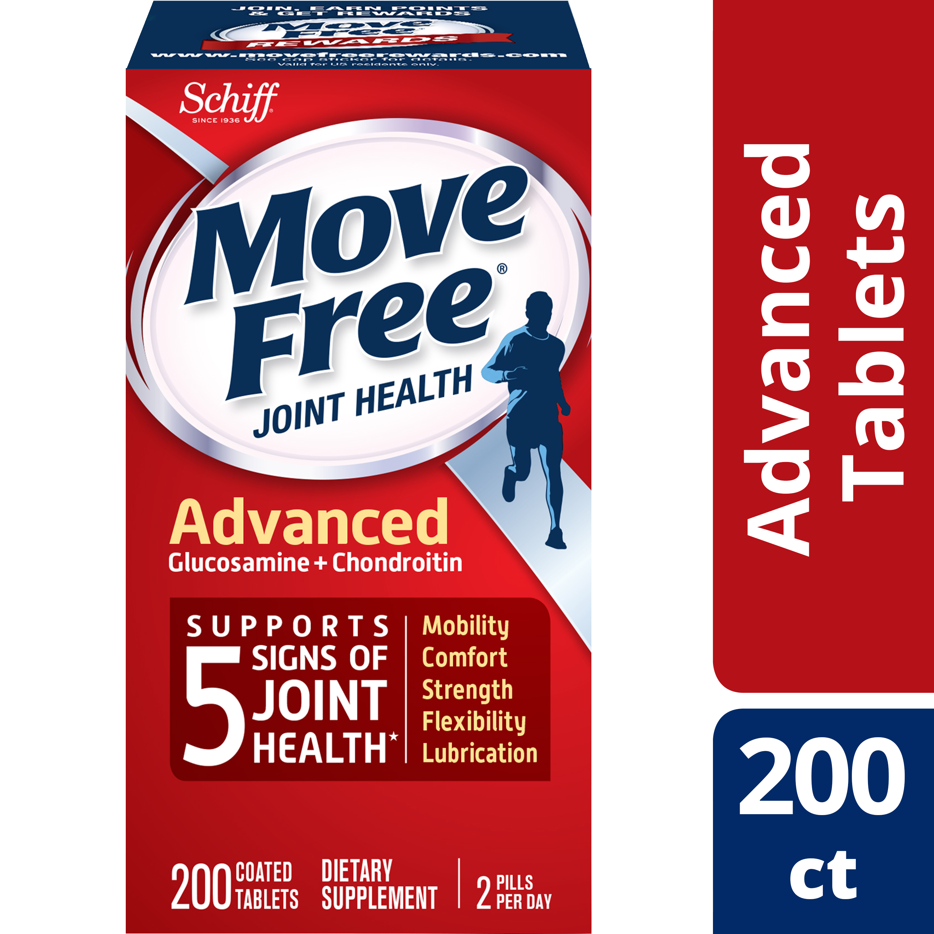 - WHAT IS IT: Move Free Advanced is a Glucosamine & Chondroitin joint supplement that supports 5 signs of joint health (mobility, flexibility, strength, lubrication and comfort)* so you can do the things you love.