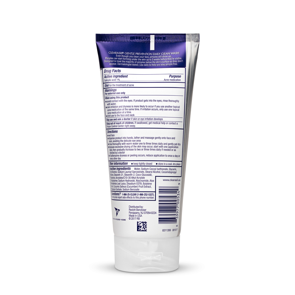 - [GENTLE YET EFFECTIVE CLEANSER]: Clearasil Gentle Prevention Daily Clean Wash is a pleasantly gentle, yet effective cleanser that reduces redness and pimple size, to help replenish your skin