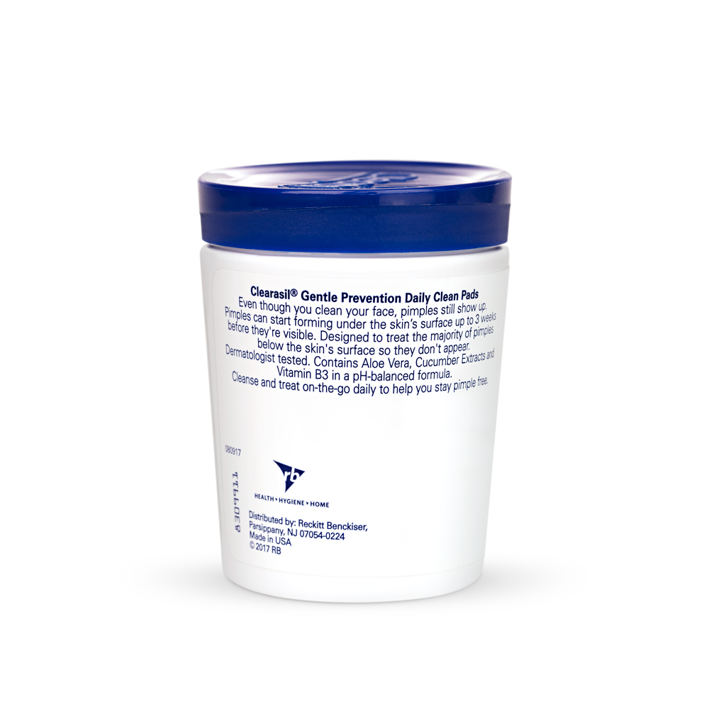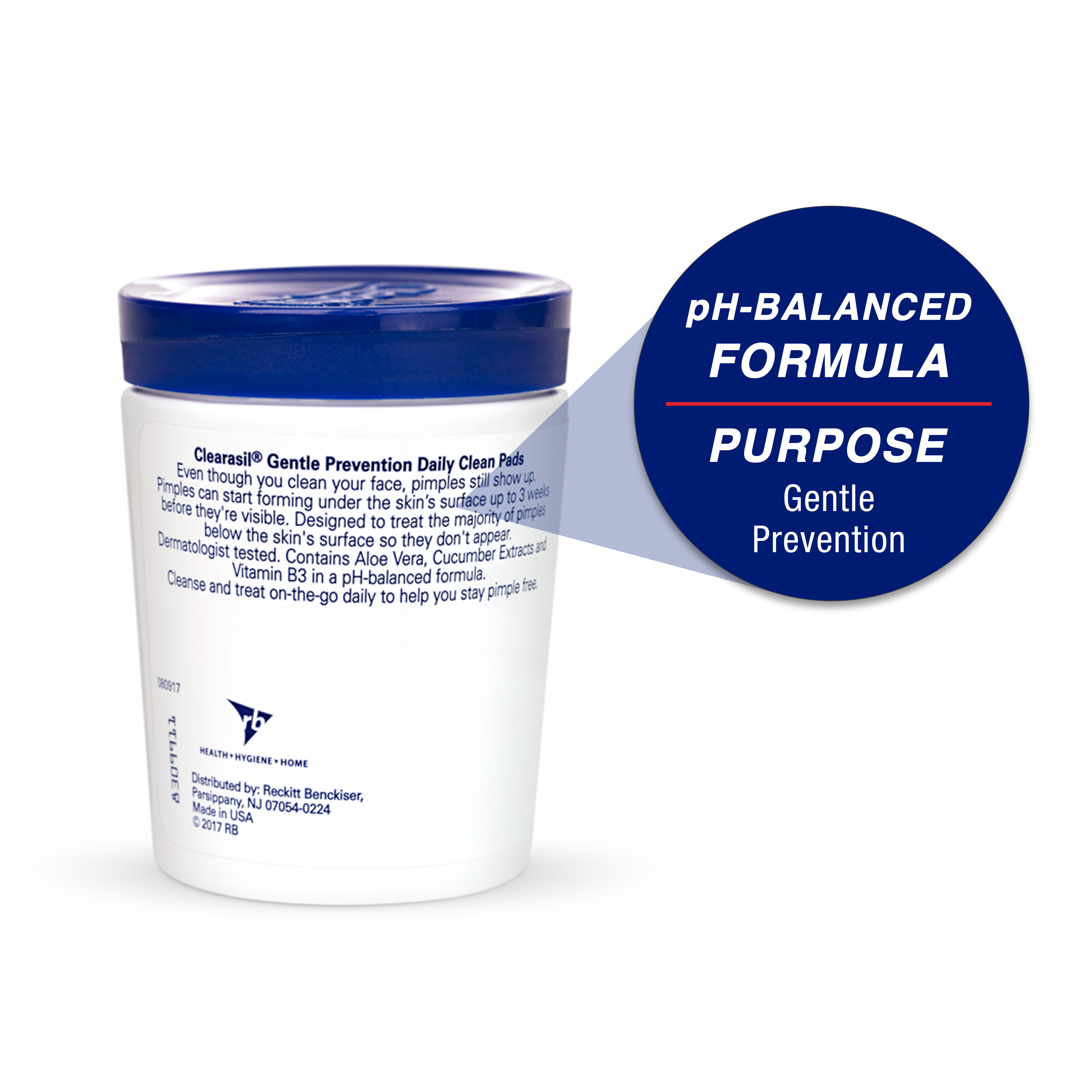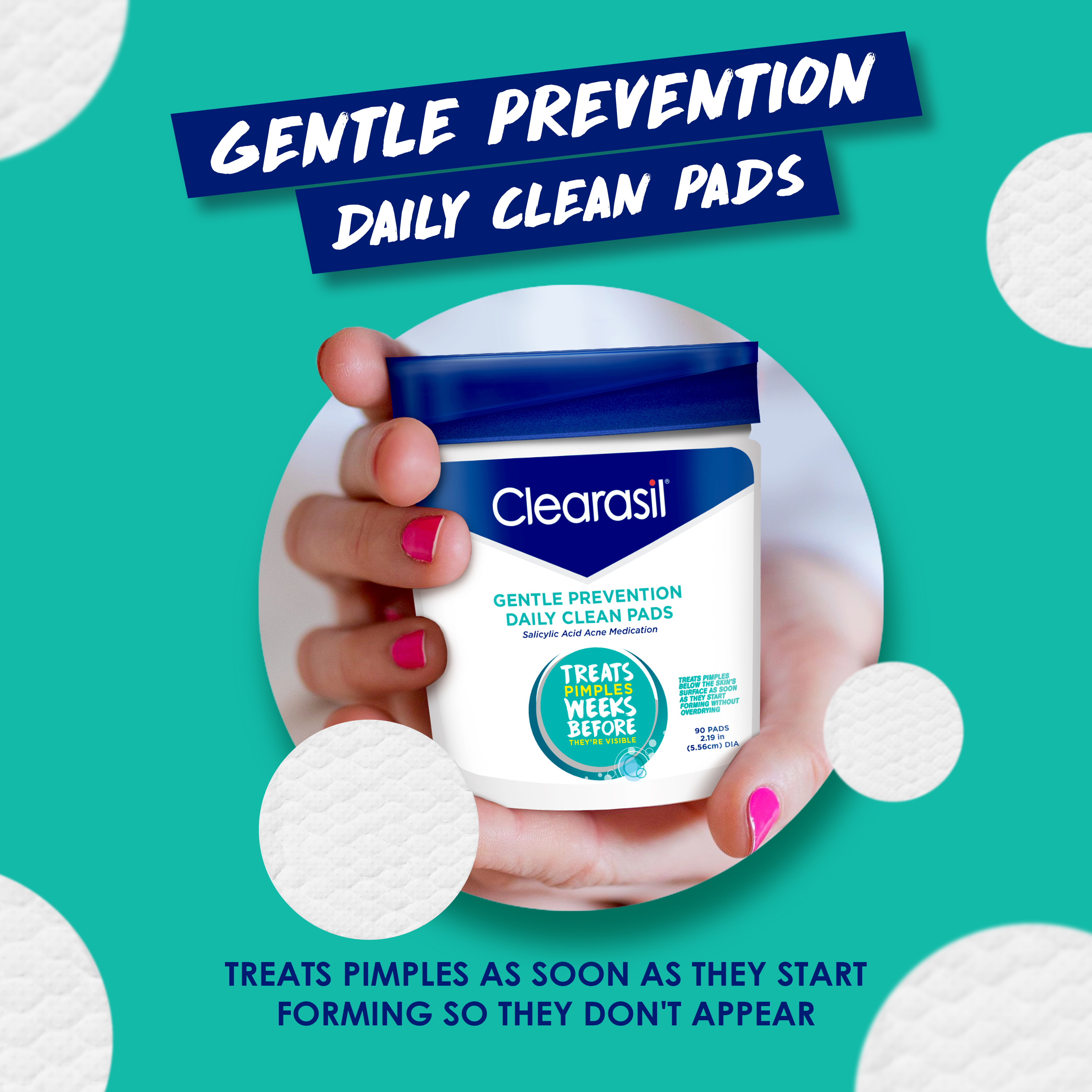 - [GENTLE YET EFFECTIVE CLEANSER]: Clearasil Gentle Prevention Daily Clean Pads is a pleasantly gentle, yet effective cleanser that treats pimples as soon as they start forming.