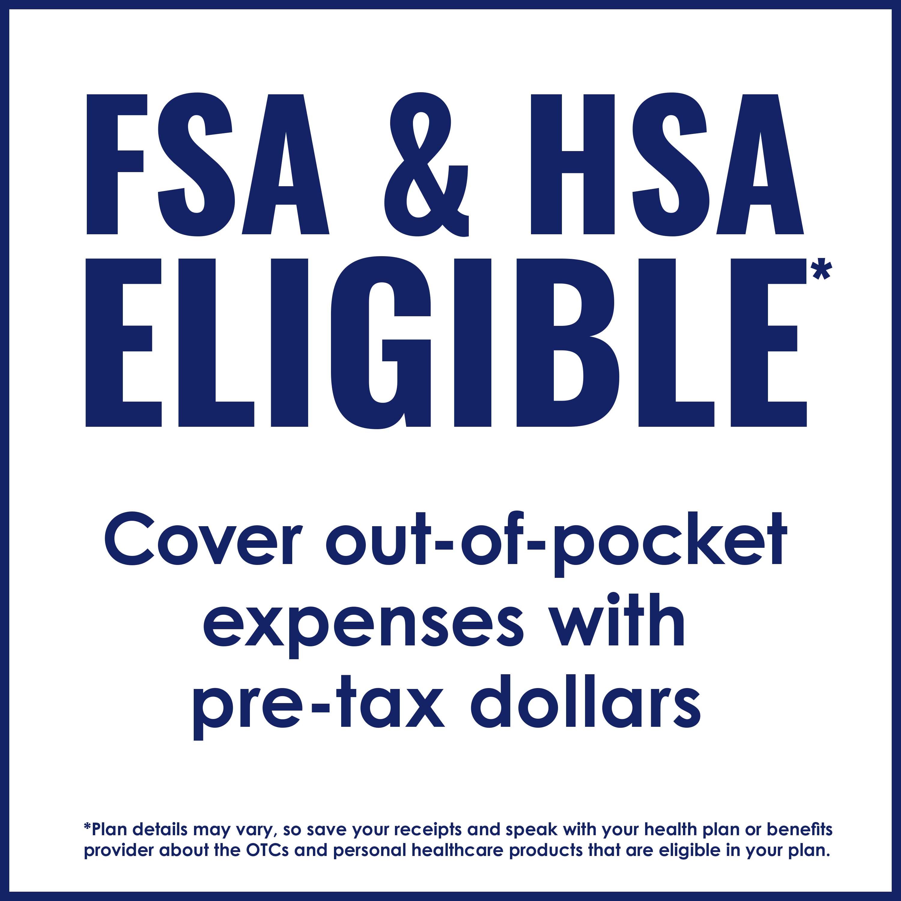 - [FSA/HSA Eligible:] FSA (Flexible Spending Account) and HSA (Health Savings Account) eligible.