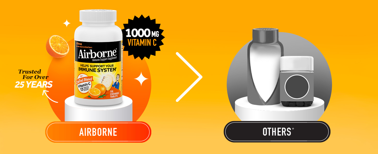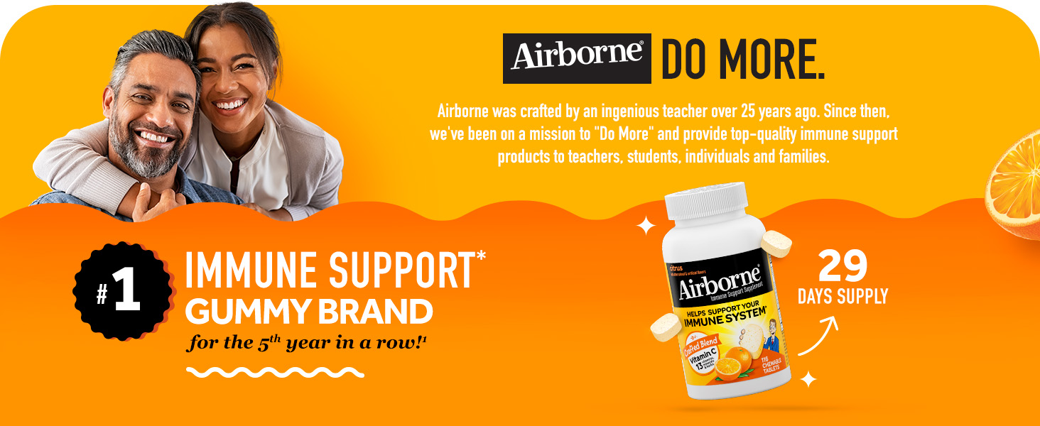 - #1 IMMUNE SUPPORT CHEWABLE BRAND: Airborne is the #1 Immune Support Gummy, Effervescent & Chewable Brand.1 Don’t take our word for it, check out our 5-star rating and read our customer reviews.