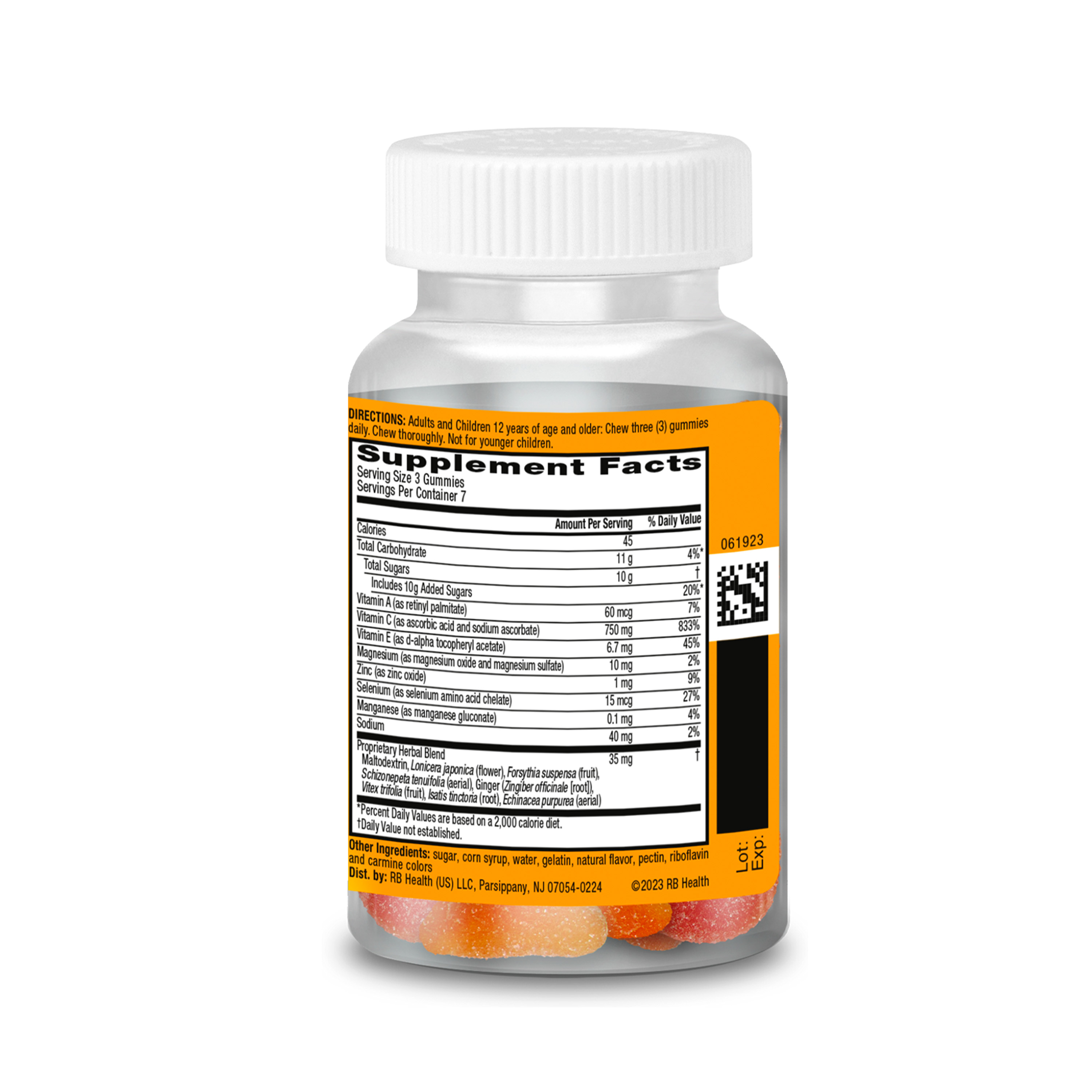 | Product Description | These gummy vitamins contain 750mg Vitamin C per serving, which helps support your immune system.* These gummies contains the powerful antioxidants Vit C (to support immune health) and Vitamin E (to help fight free radicals).* This crafted blend of 9 vitamins, minerals & herbs is an excellent source of Selenium (helps protect the body from oxidative stress).*