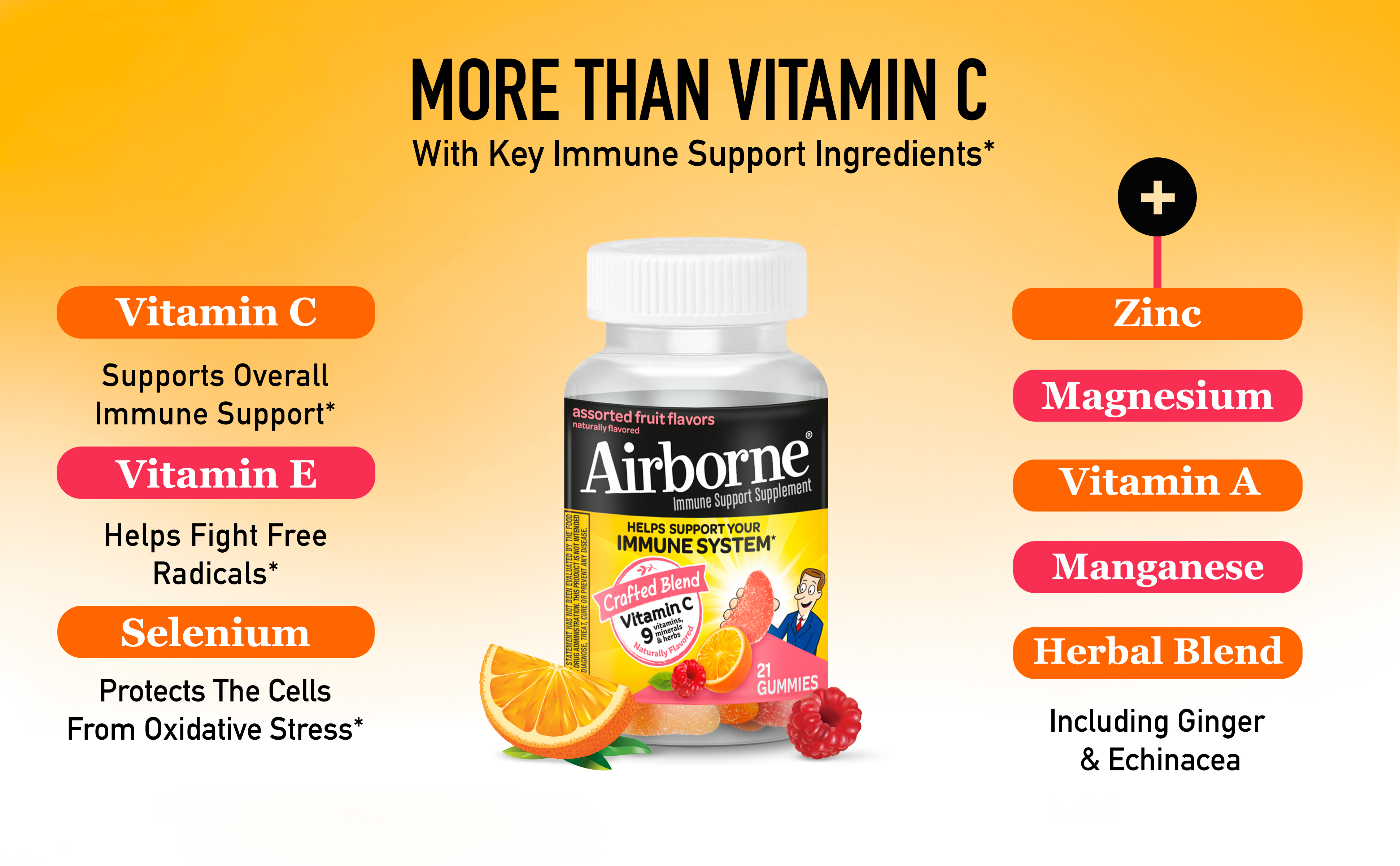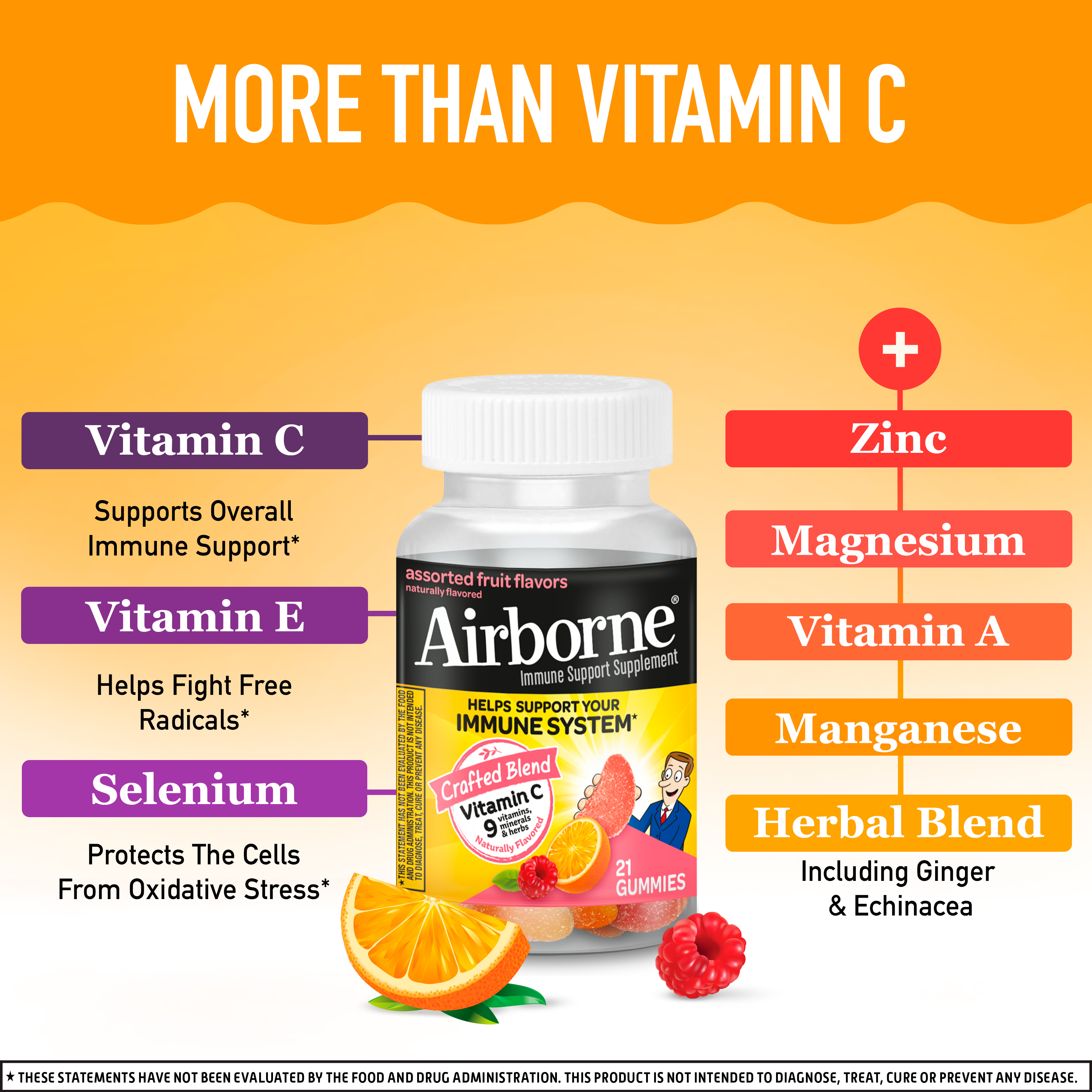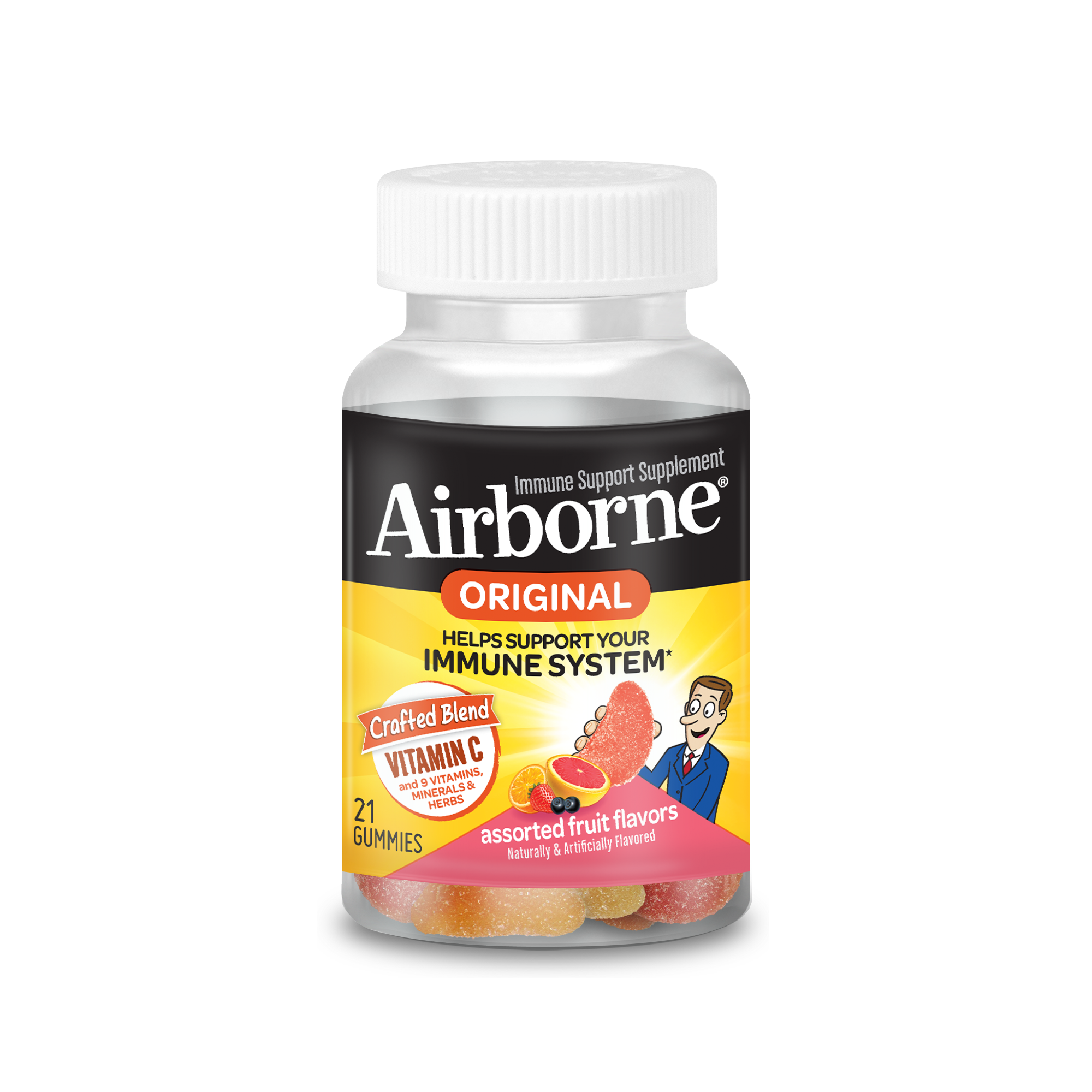 | Amazon Title | Airborne 750mg Vitamin C Gummies For Adults, Immune Support Supplement with Powerful Antioxidants Vitamins A C & E - 21 Gummies, Assorted Fruit Flavor |
