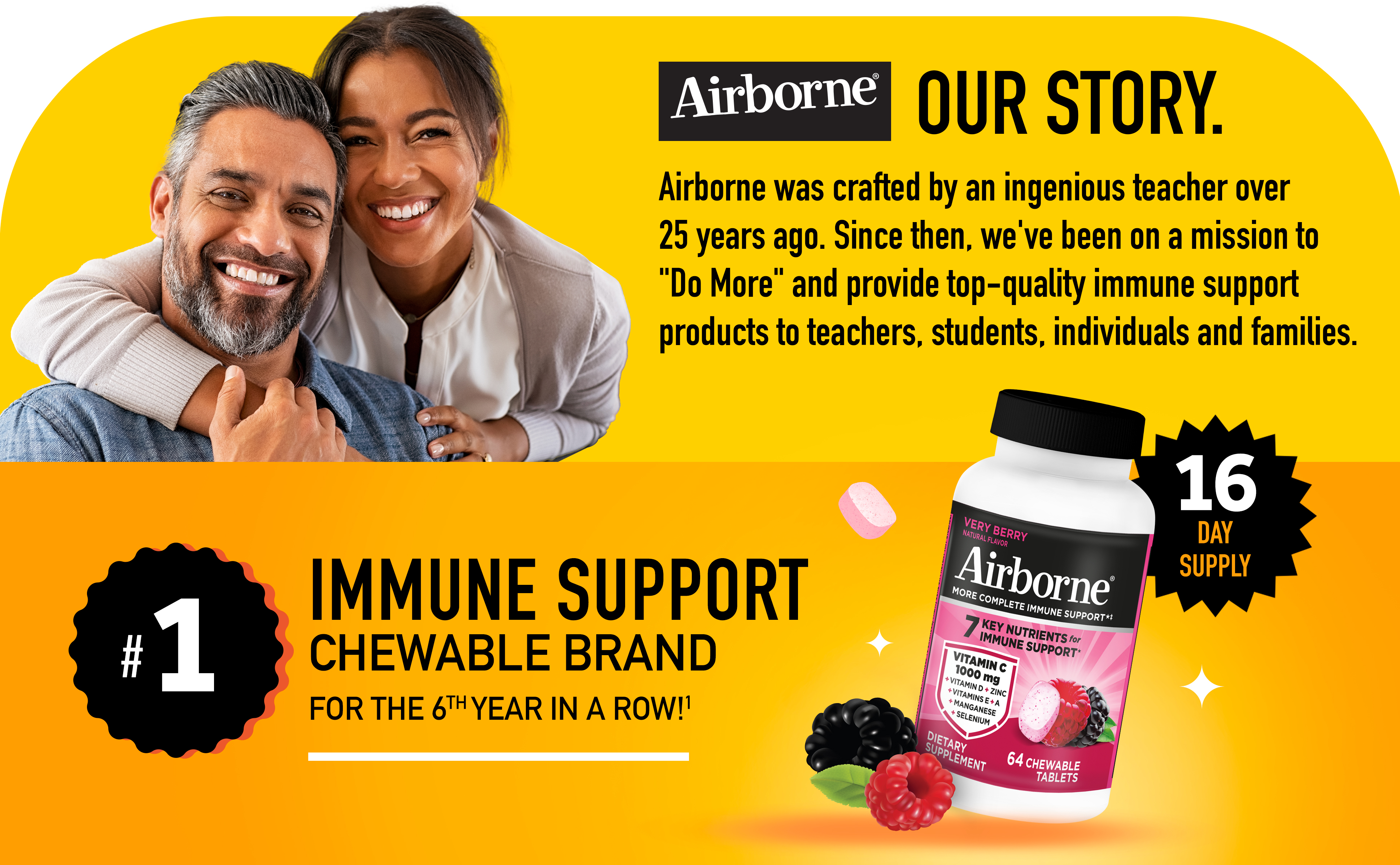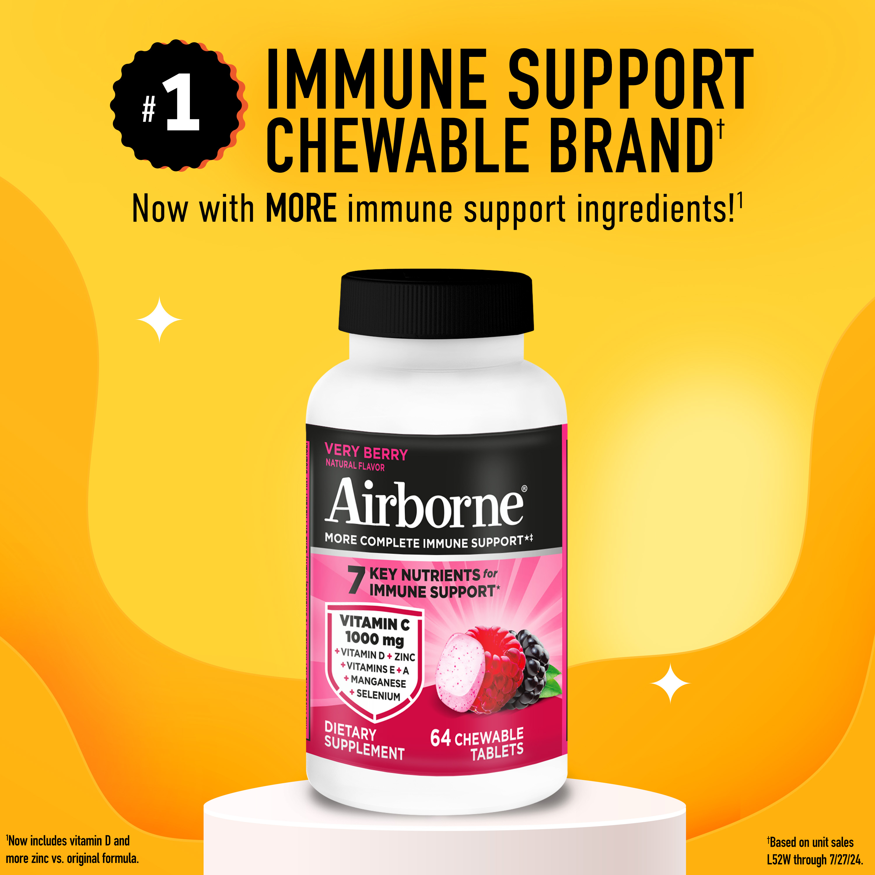 - NUMBER ONE IMMUNE SUPPORT EFFERVESCENT BRAND: Airborne is the Number 1 Immune Support Gummy, Effervescent & Chewable Brand (Based on unit sales L52W through 7/24/2024)