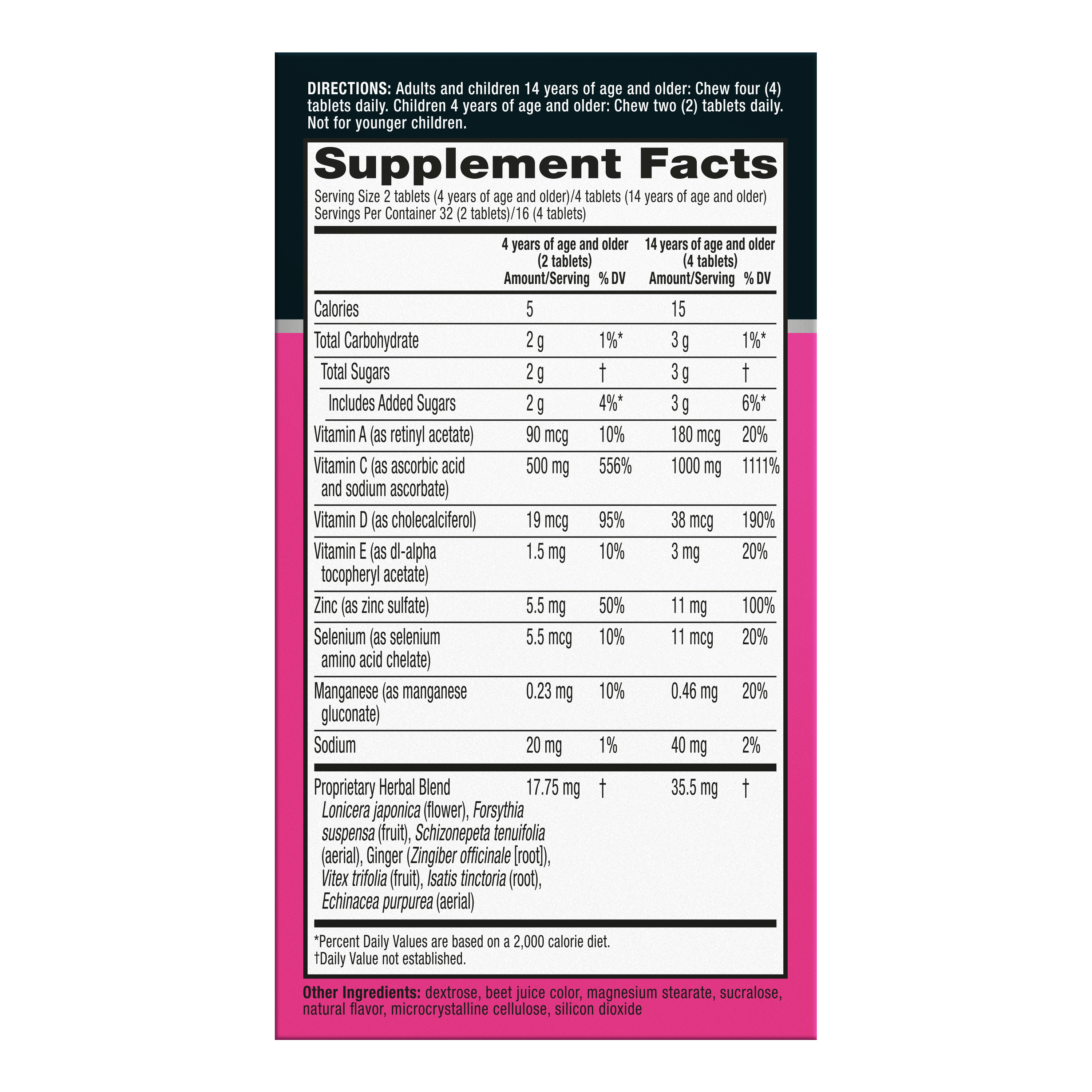 - HOW TO ENJOY: Adults & children 12 years of age and older: Chew (4) tablets a day. One serving of (4) chewable tablets provides 1000mg of VITAMIN C!