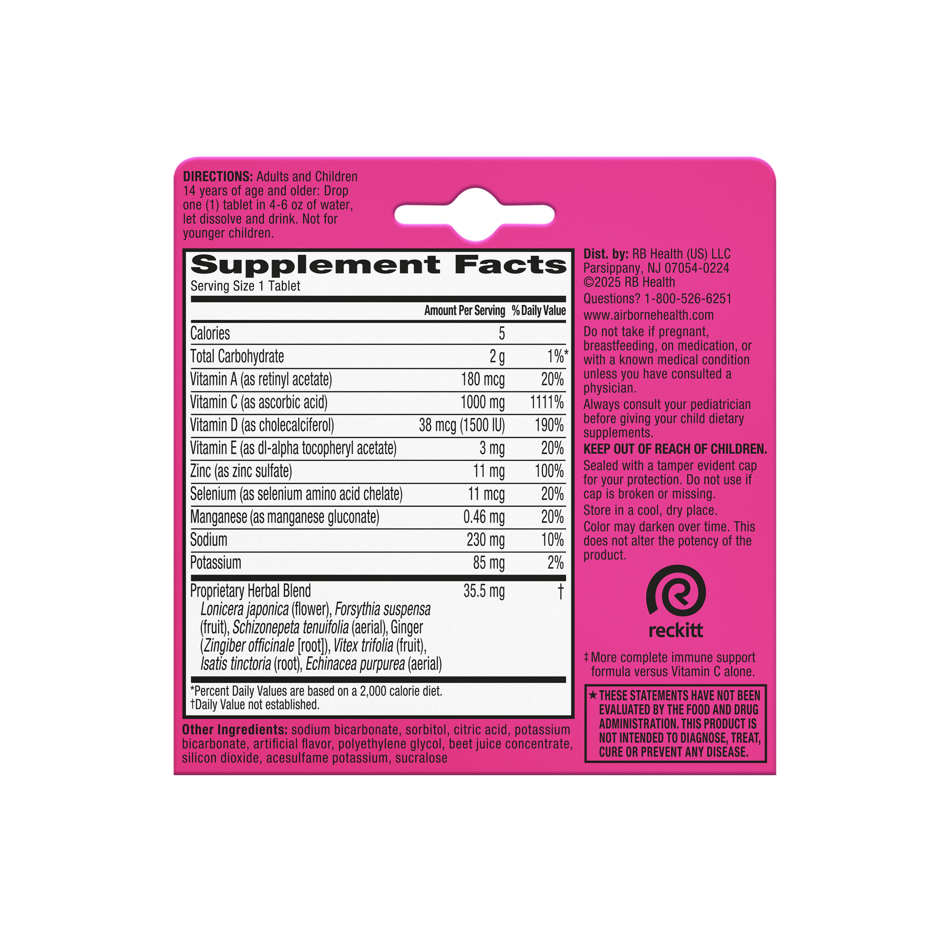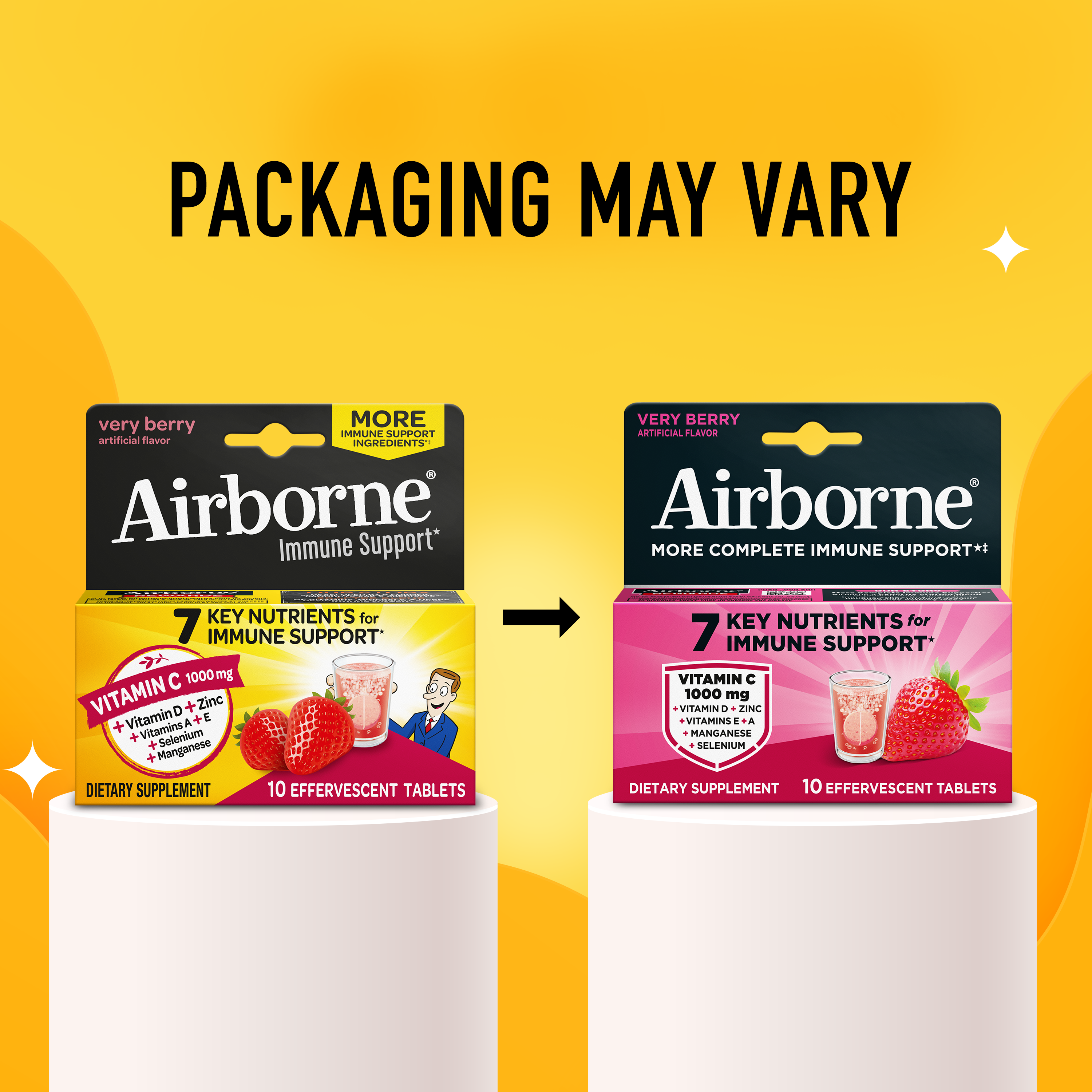 - VITAMIN C 1000mg: Airborne immune support effervescent tablets are packed with 1000mg Vitamin C per serving, which helps support your immune system.