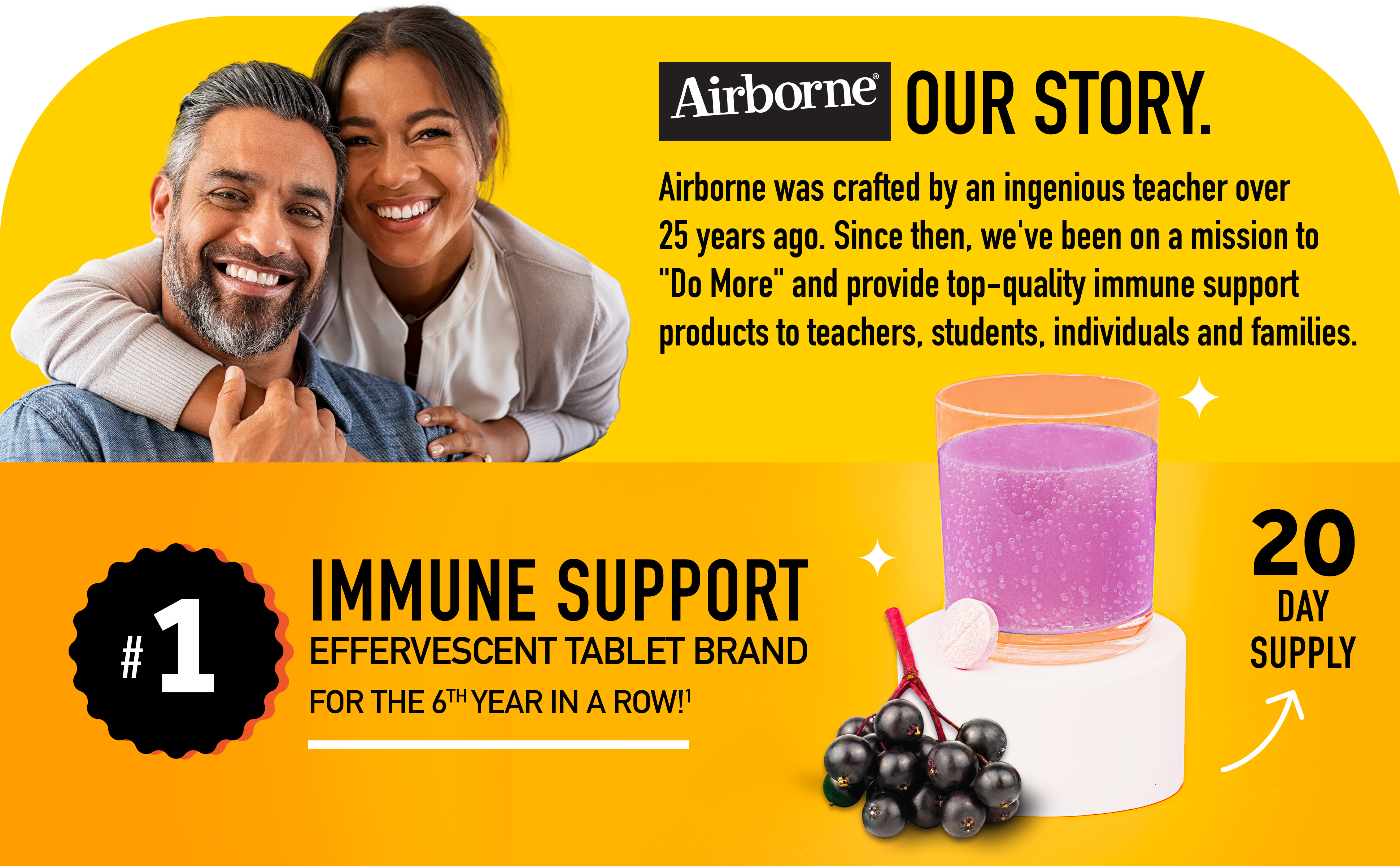 - MADE BY A TEACHER: The original Airborne recipe was crafted by an ingenious teacher about 20 years ago. Why? Because throughout the school year, she wanted to support her immune system.*