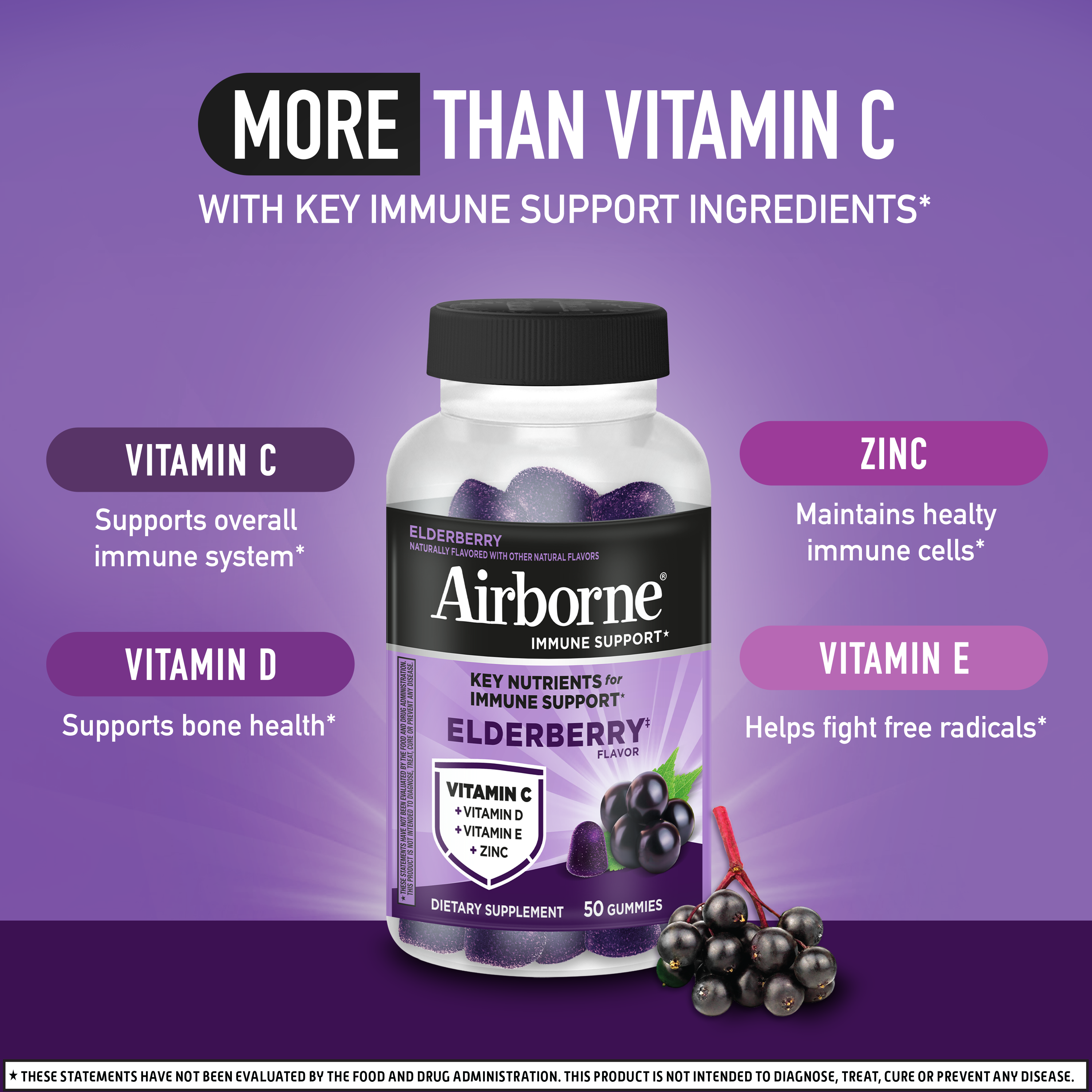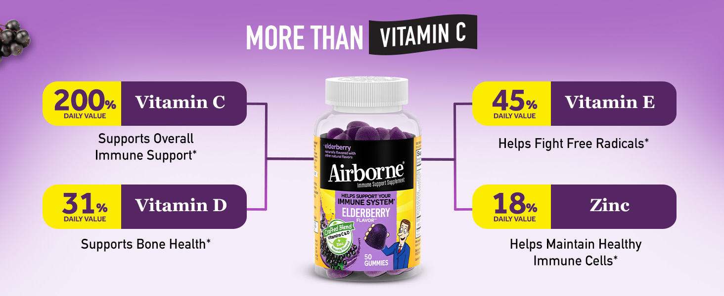 - AIRBORNE ELDERBERRY GUMMIES (+ ZINC & VITAMIN C): Daily immune support* full of benefits, bursting with flavor and oh-so seriously delicious? Yep, THIS. IS. IT!