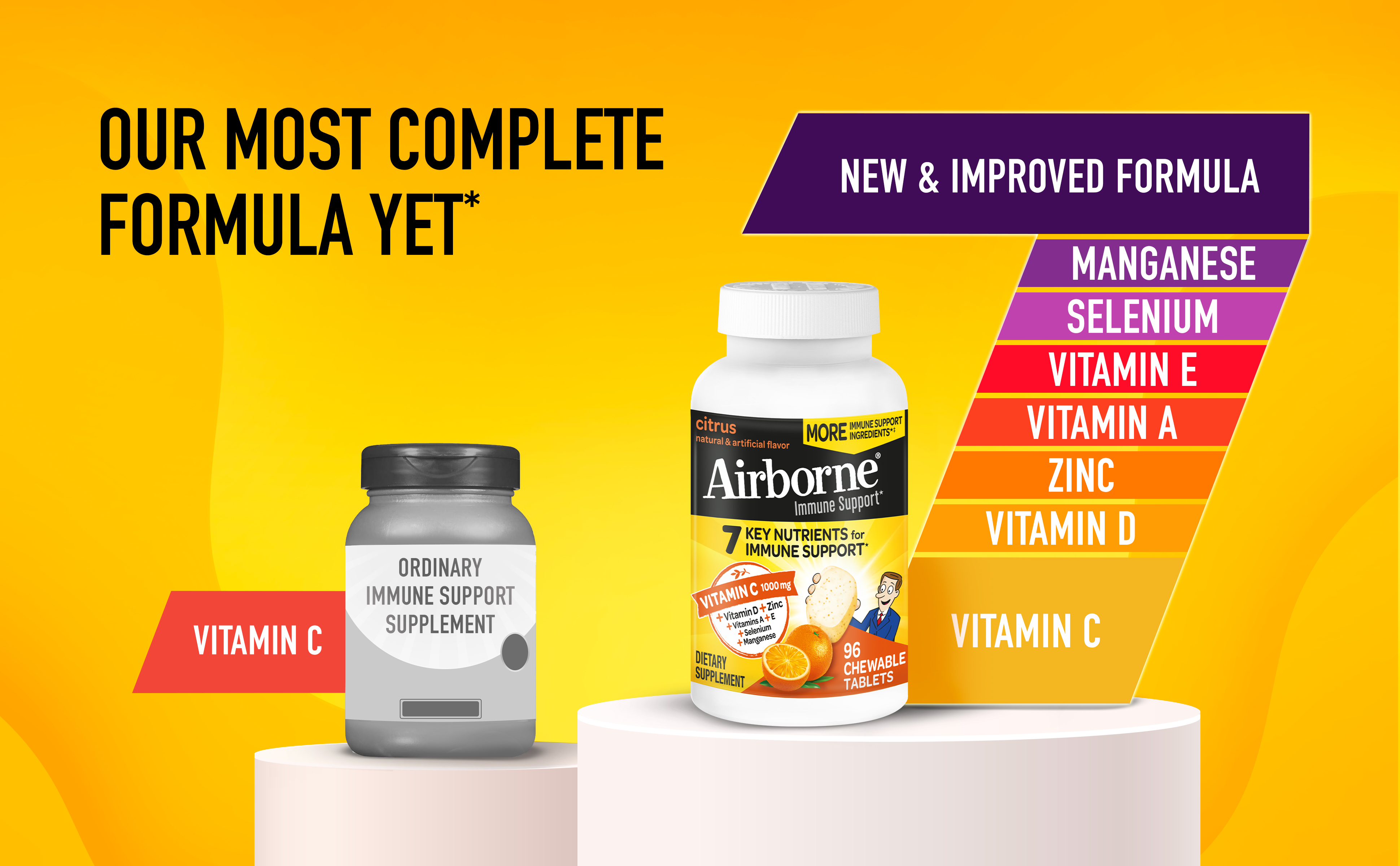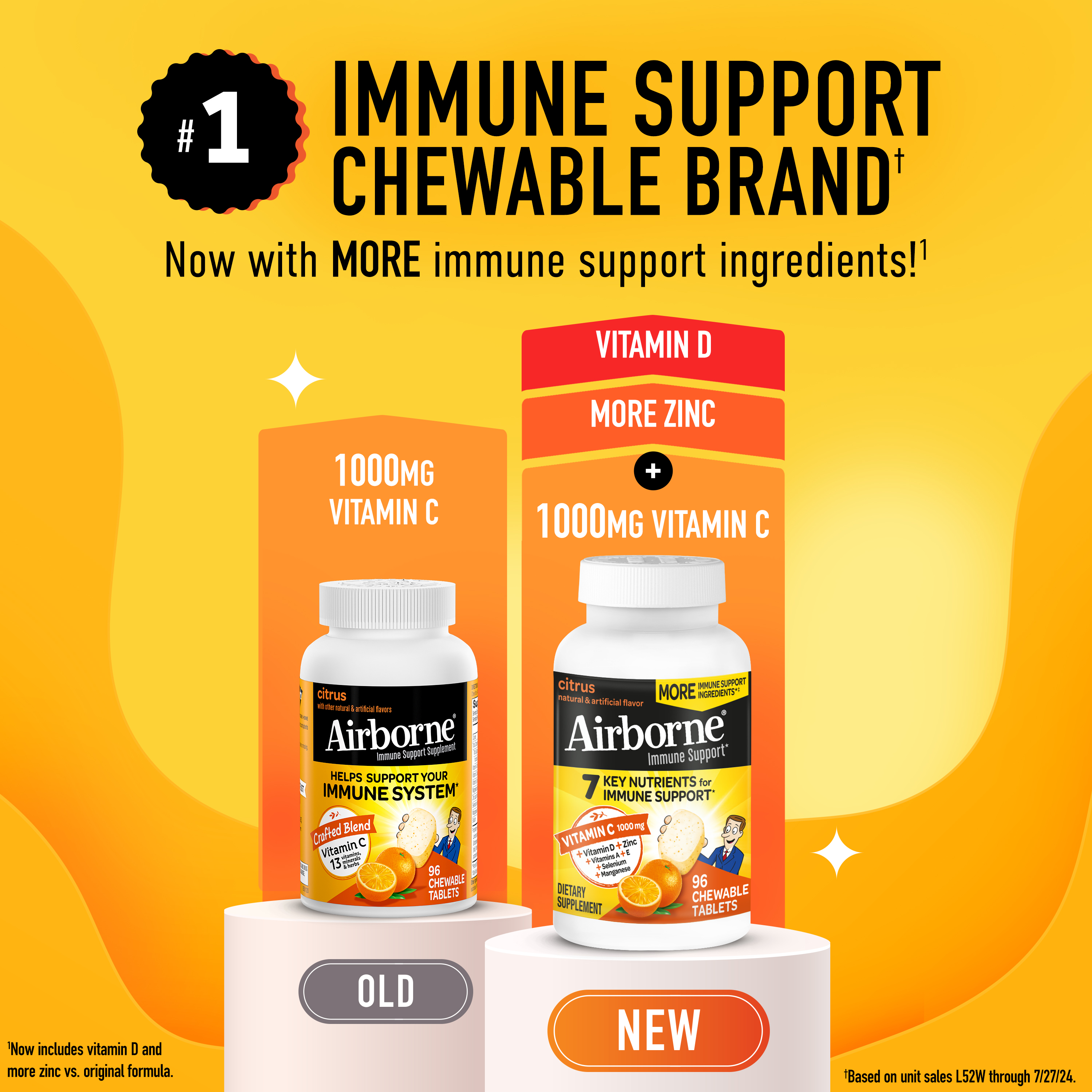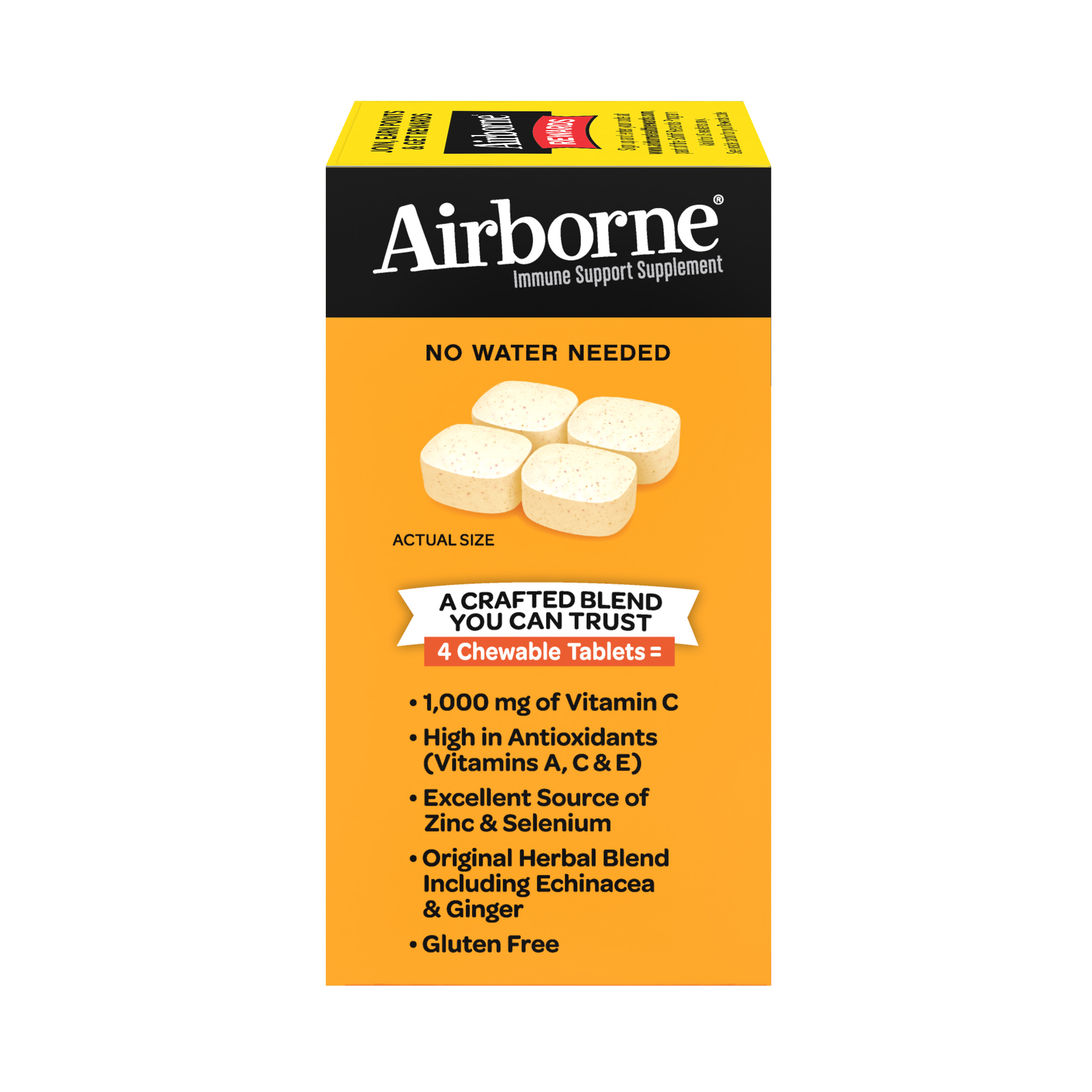 - VITAMIN C 1000mg: Airborne Vitamin C chewable Zinc tablets are packed with 1000mg Vitamin C per serving, which helps support your immune system.*