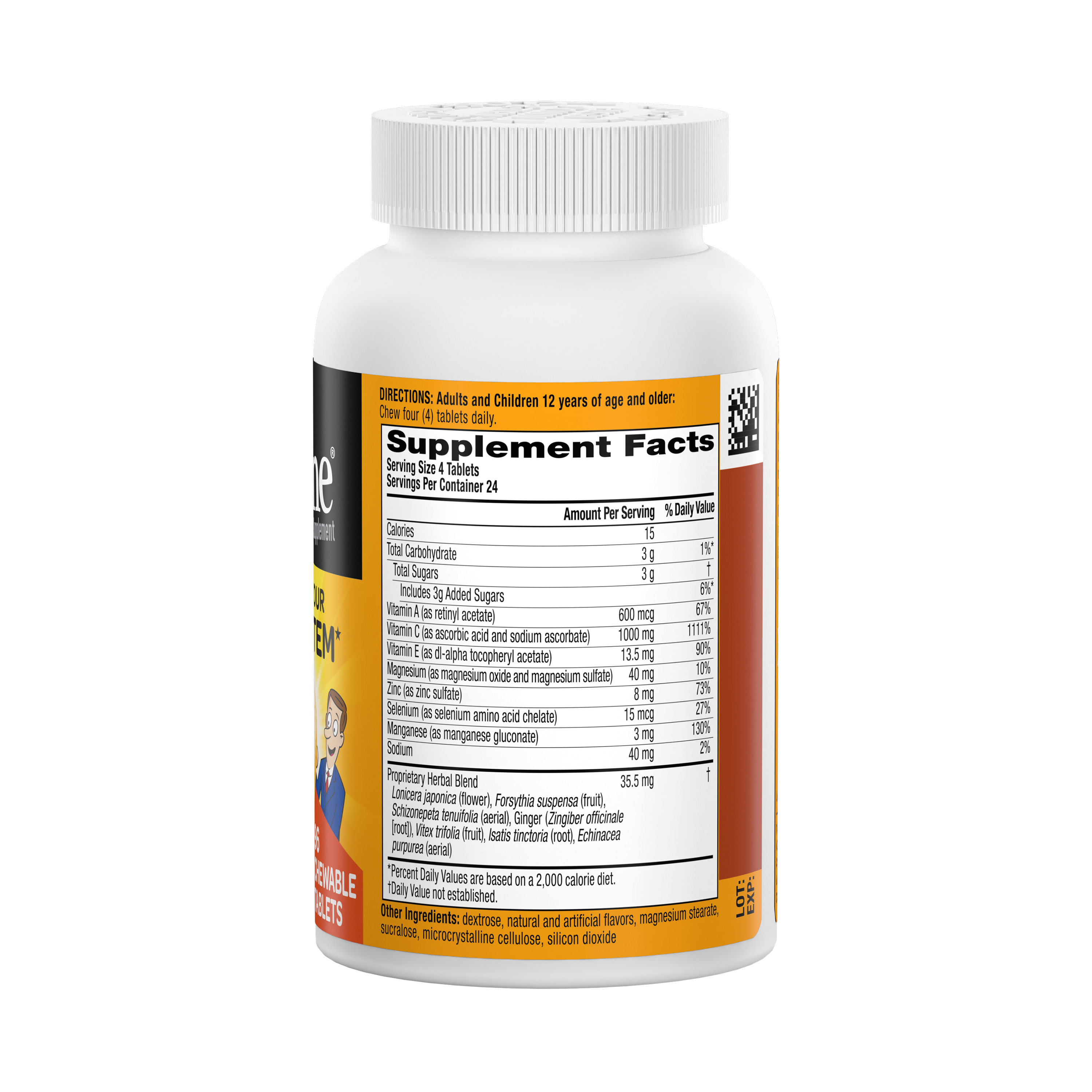 - HOW TO ENJOY: Adults & children 12 years of age and older: Chew (4) tablets a day. One serving of (4) chewable tablets provides 1000mg of VITAMIN C!