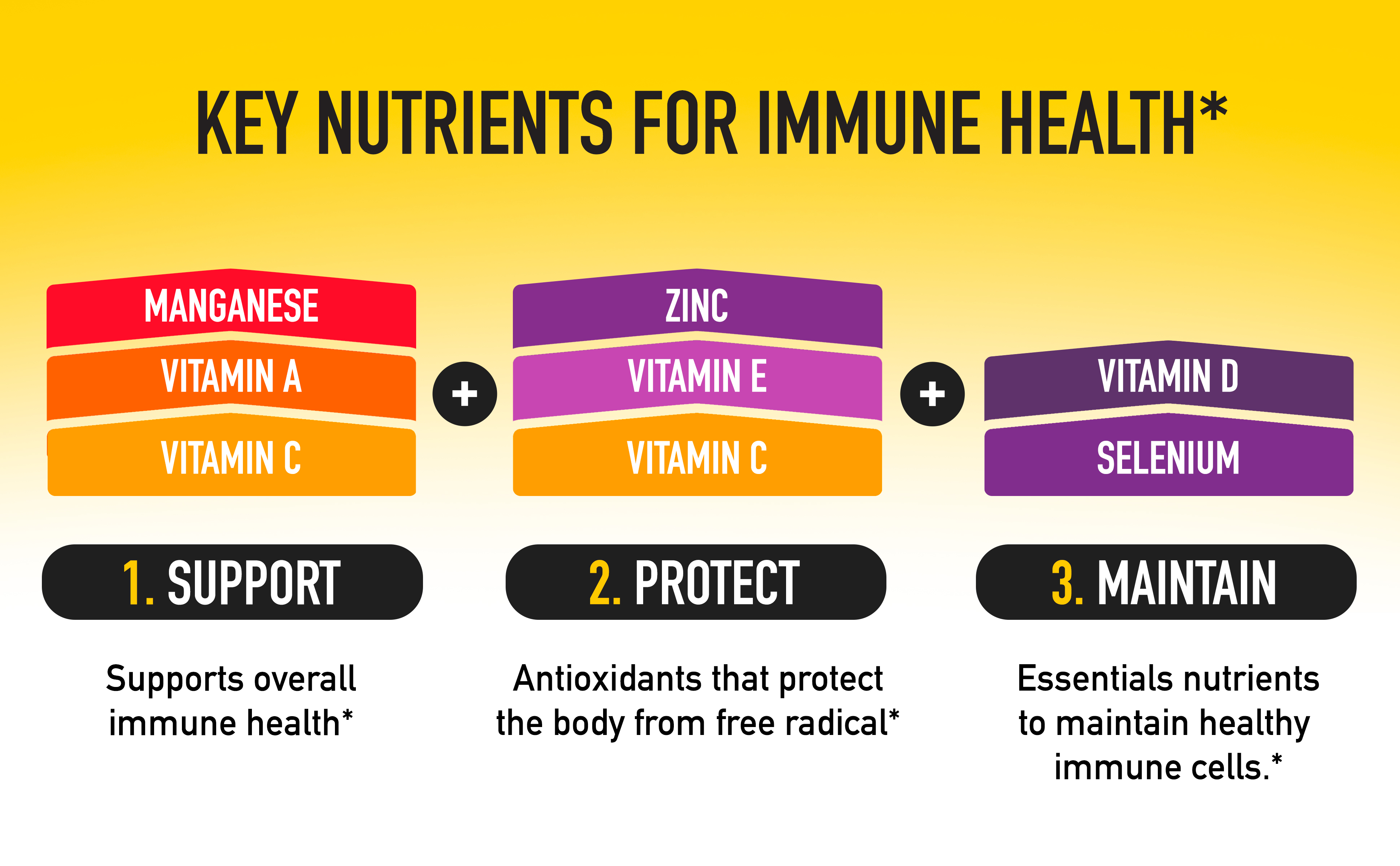 - MORE THAN VITAMIN C: This crafted blend of 13 immune support vitamins, minerals & herbs is an excellent source of Zinc and Selenium.