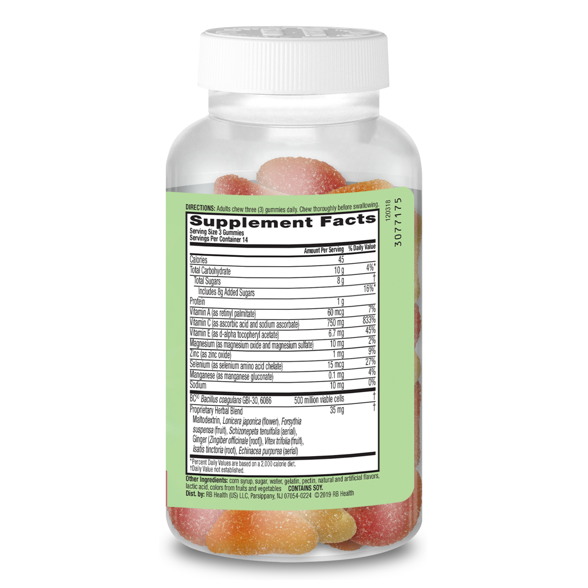- Contains 750 mg of Vitamin C per serving (3 gummies) combined with a probiotic in tasty, chewable gummies you'll be sure to enjoy