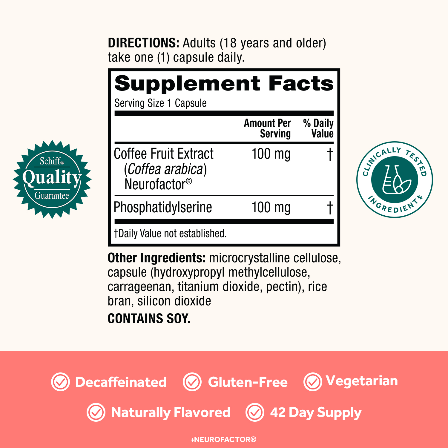 - CLINICALLY PROVEN NATURAL INGREDIENTS: Clinical studies have shown that coffee cherry (neurofactor) and plant-sourced PS (phosphatidylserine) enhance brain performance*.