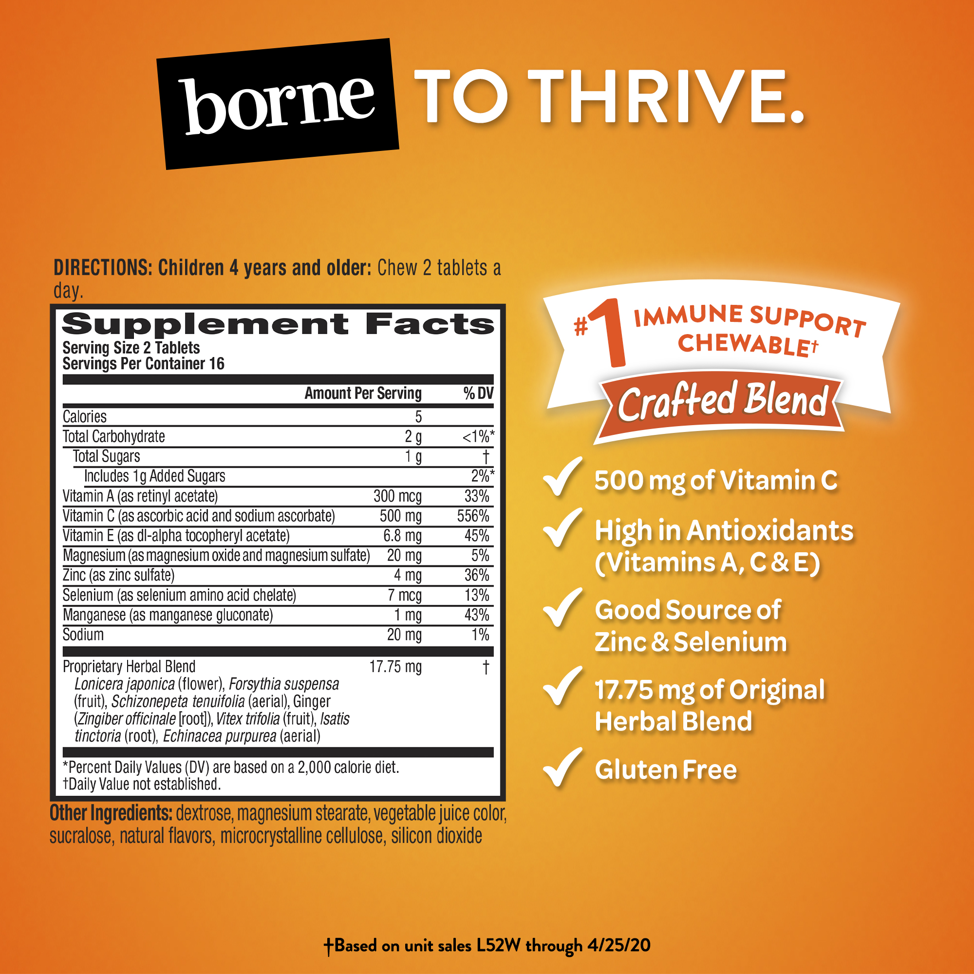 - HOW MUCH SHOULD I TAKE: Children 4 years or older, chew (2) tablets a day. Each tablet contains a specially crafted blend of vitamins & minerals to help support your immune system*. One serving of (2) chewable tablets provides 500mg of VITAMIN C!