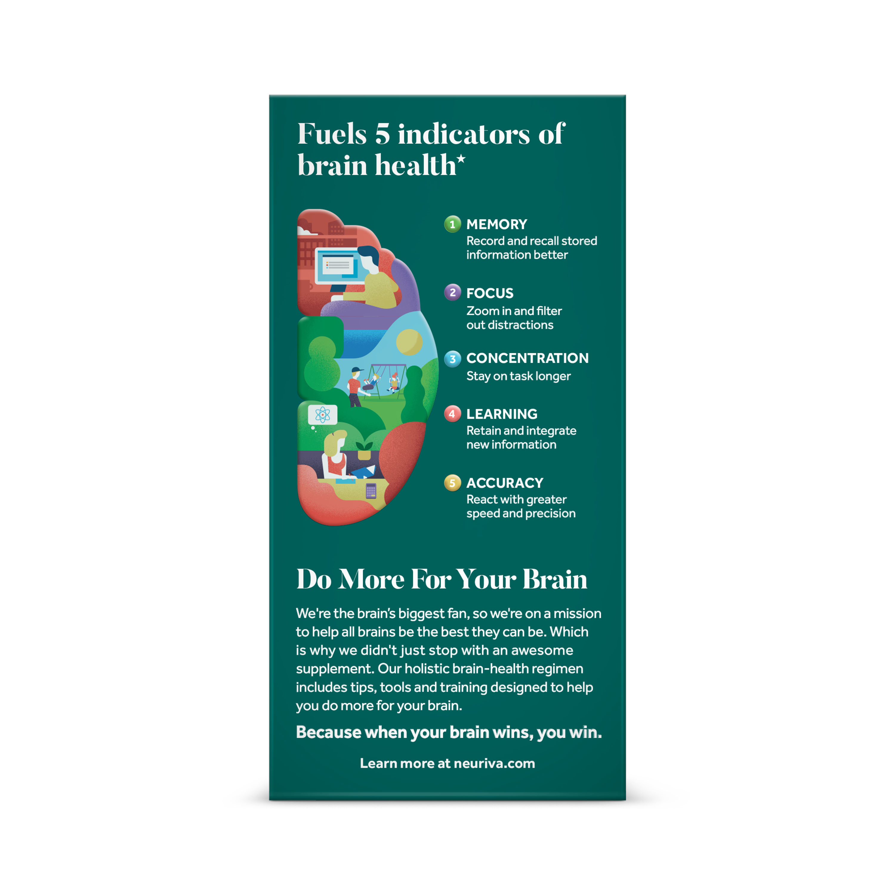 - FUELS 5 INDICATORS OF BRAIN HEALTH: The clinically tested ingredients of Neuriva support 5 different indicators of brain health: focus, memory, learning, accuracy and concentration.