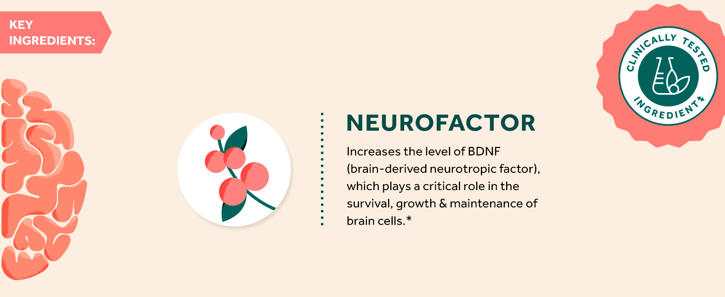- NEUROFACTOR, A POWERFUL EXTRACT: Neurofactor is a whole fruit extract of the Coffea Arabica plant and has been shown to increase levels of BDNF (brain-derived neurotrophic factor), which is known to strengthen connections between brain cells.*