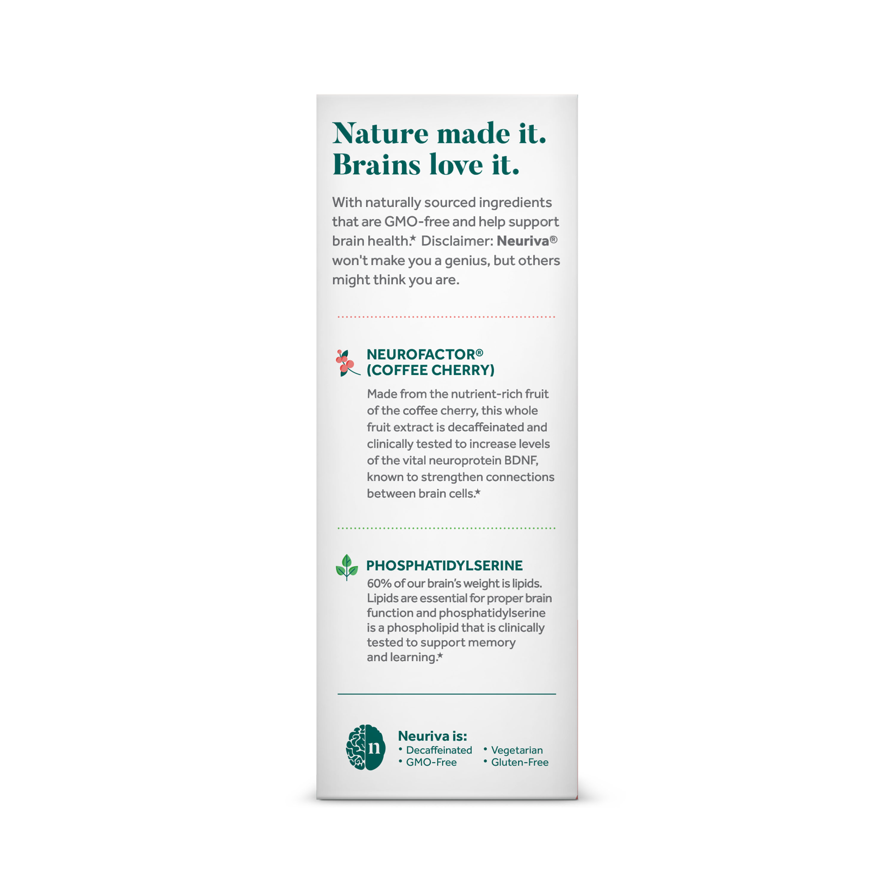 - MADE WITH YOU IN MIND: Neuriva is GMO-Free, Vegetarian and Decaffeinated.