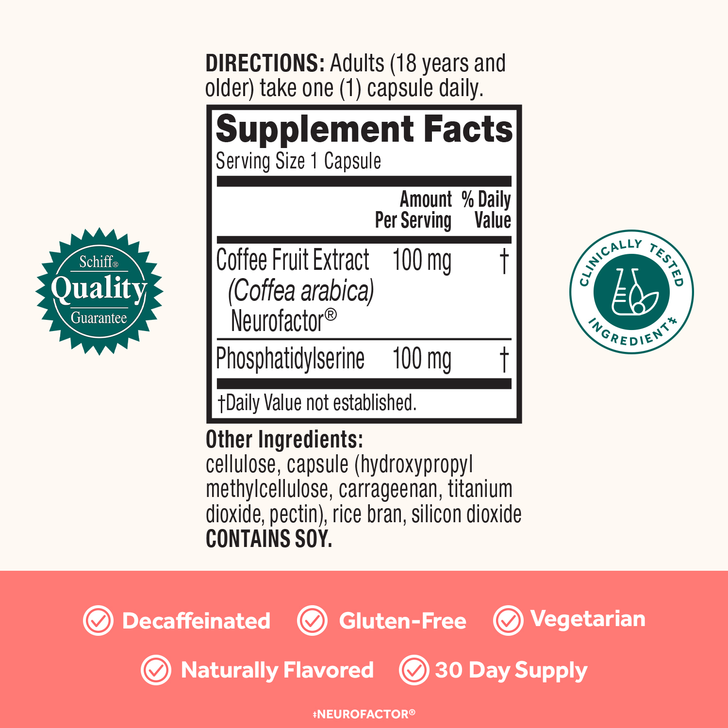 - CLINICALLY TESTED NATURAL INGREDIENTS: Clinical studies have shown that coffee cherry (neurofactor) and plant-sourced Phosphatidylserine have a positive effect on brain health.