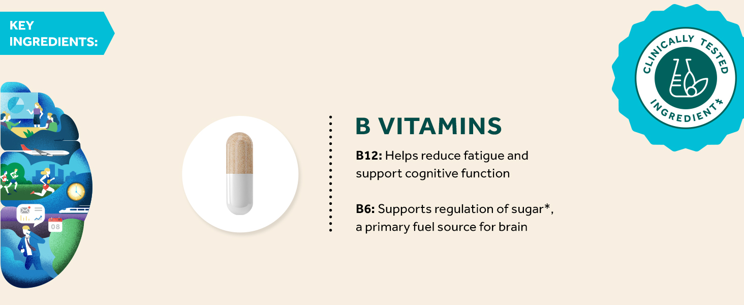 - MAG: B VITAMINS: Essential for cognitive function, vitamins B6 & B12 help enhance brain energy production, neurotransmitter synthesis, and mood support, promoting overall brain well-being.