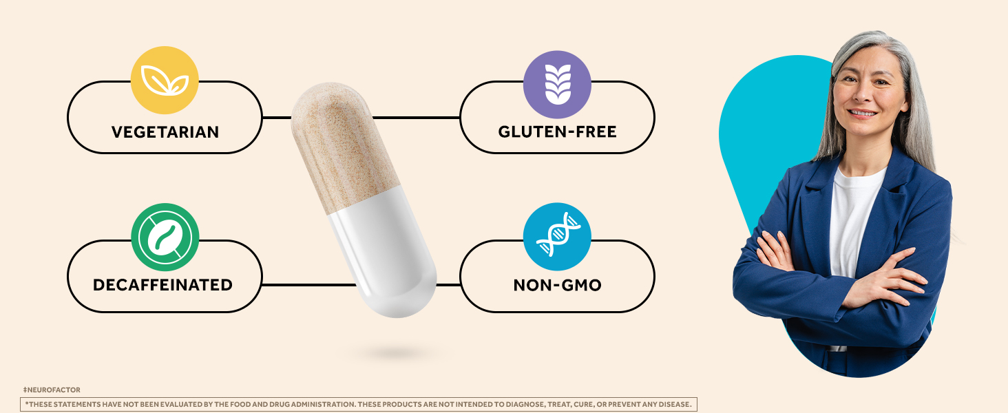 - TRUSTWORTHY INGREDIENTS: These brain health capsules were formulated with you in mind, so they are Vegetarian, Gluten-Free, GMO-Free and Decaffeinated.