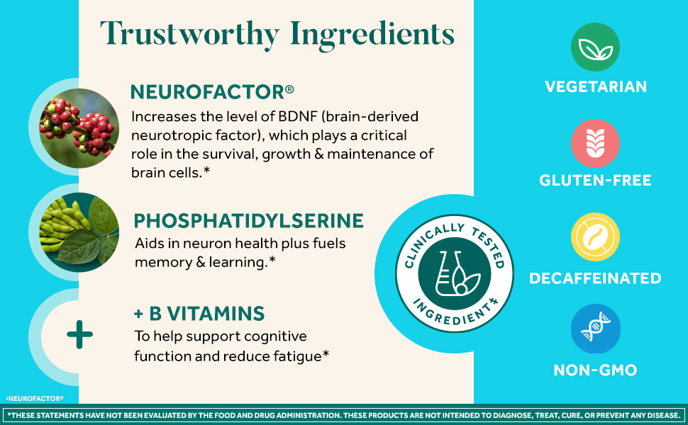 - MENTAL HEALTH: Clinically tested Neurofactor helps support focus, concentration & accuracy, while Clinically tested Plant-Sourced Phosphatidylserine helps fuel memory & learning.* With B Vitamins to help support cognitive function.*