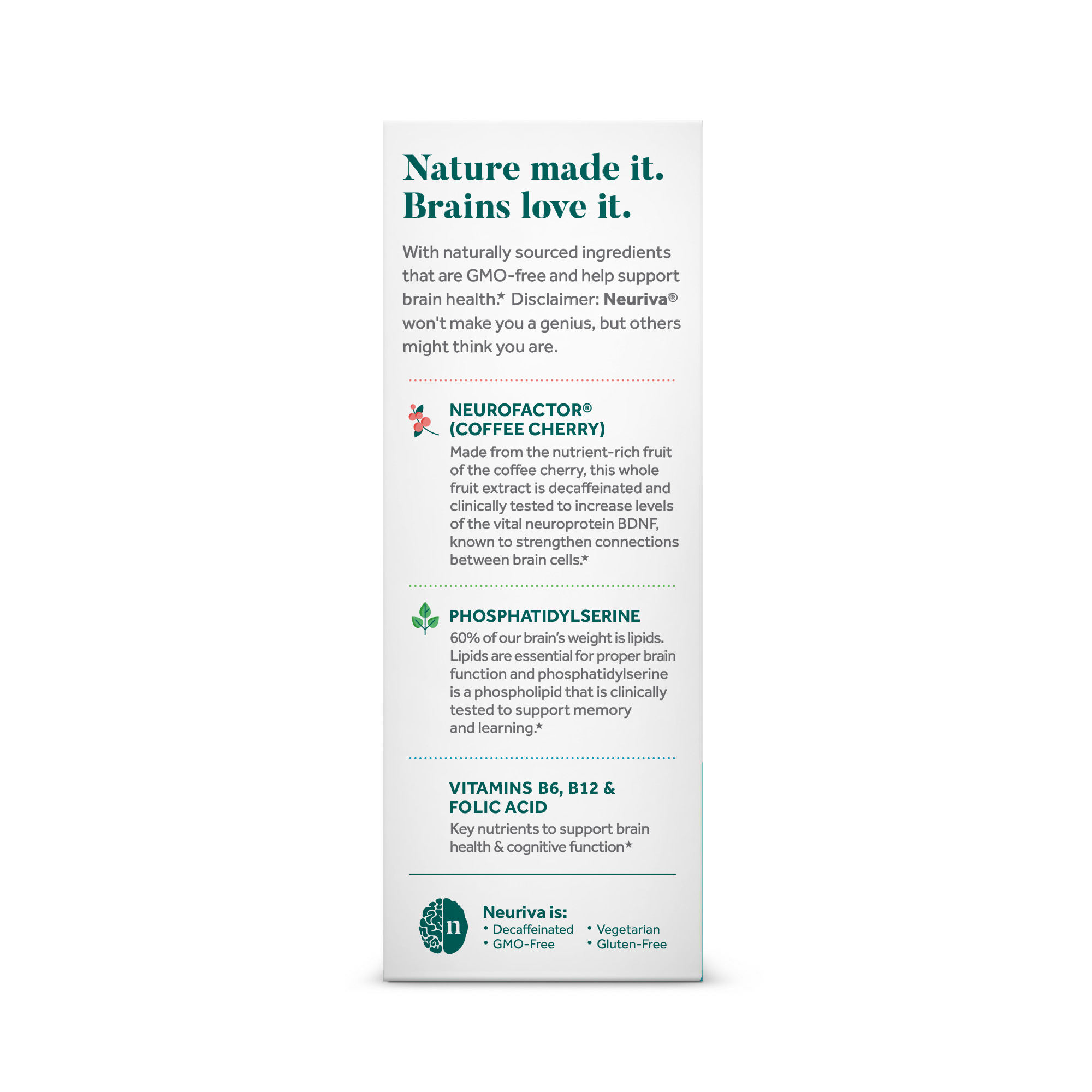 - NOOTROPIC BRAIN SUPPORT CAPSULES: Clinical studies have shown that coffee cherry (Neurofactor) and plant-sourced Phosphatidylserine have a positive effect on brain health.*