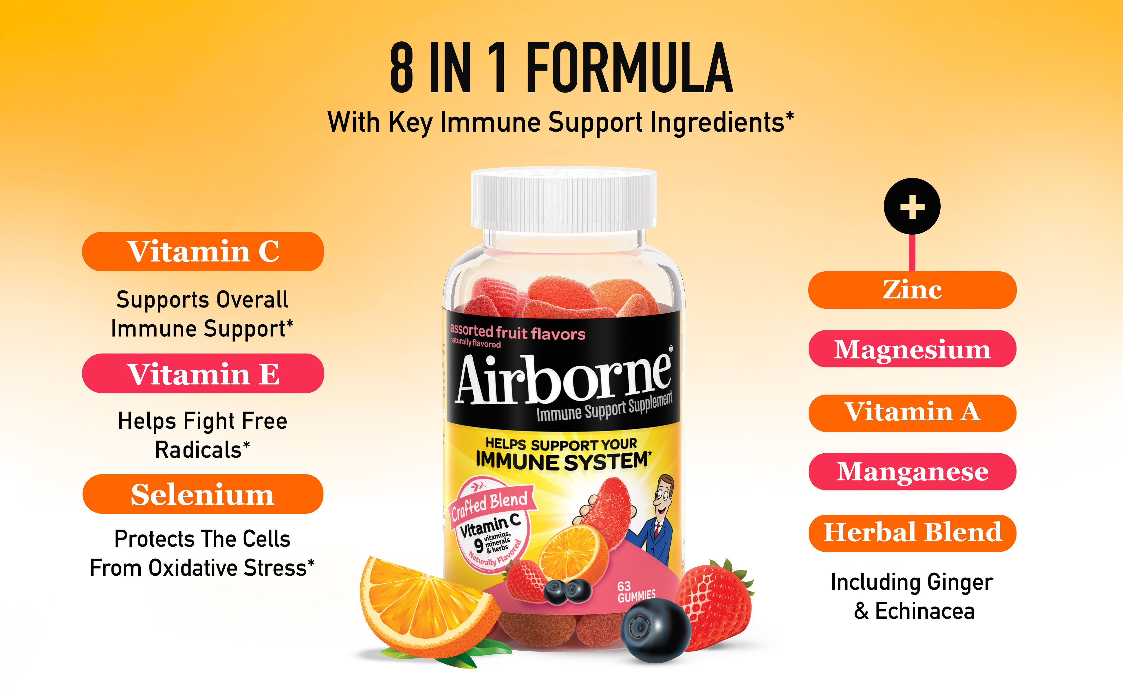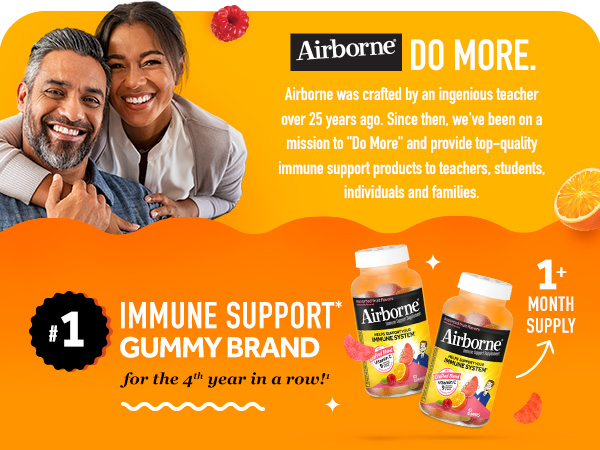 - #1 IMMUNE SUPPORT GUMMY BRAND: Airborne is the #1 Immune Support Gummy, Effervescent & Chewable Brand.1 Don’t take our word for it, check out our 5-star rating and read our customer reviews.