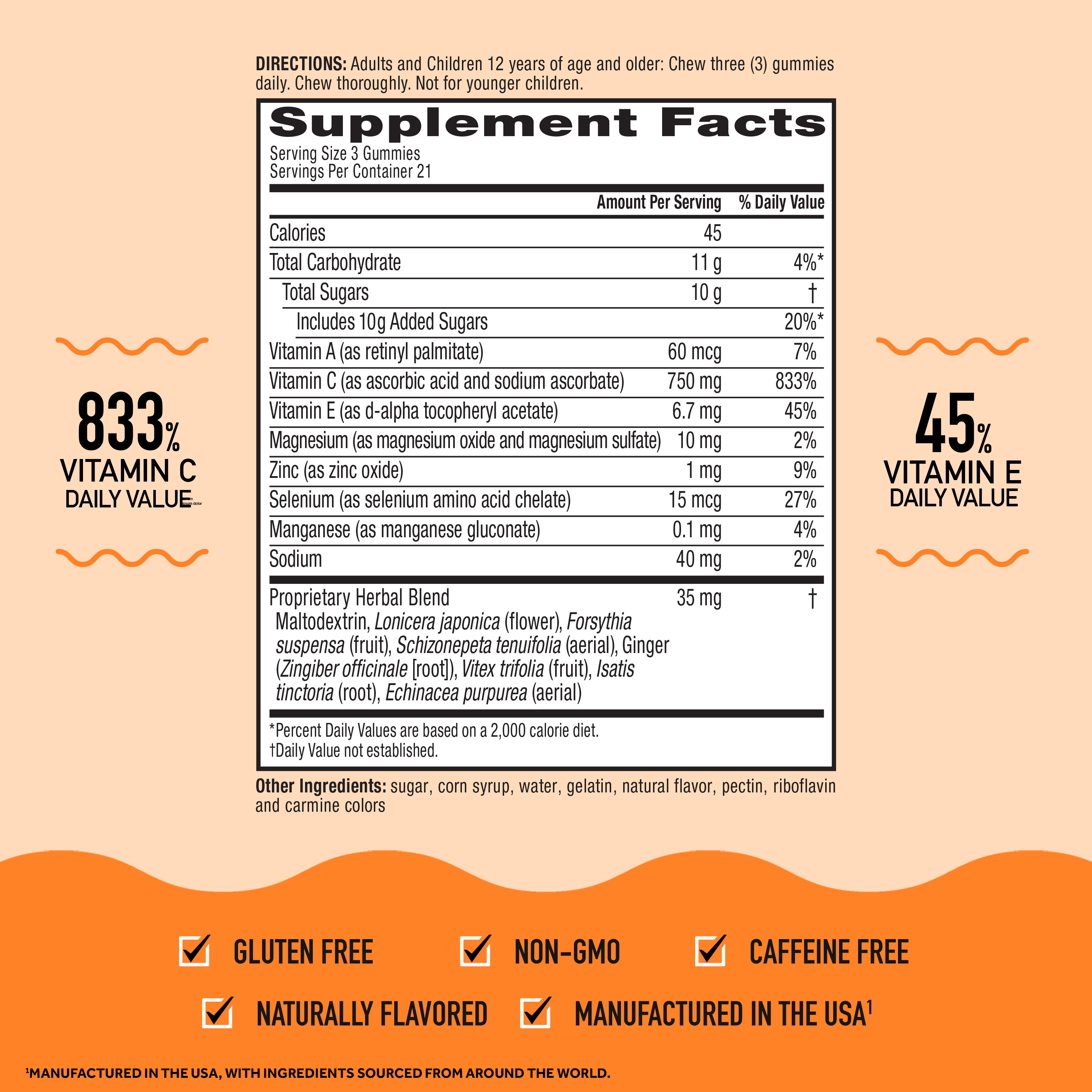 - VITAMIN C GUMMIES: These gummy vitamins contain 750mg Vitamin C per serving, which helps support your immune system.*