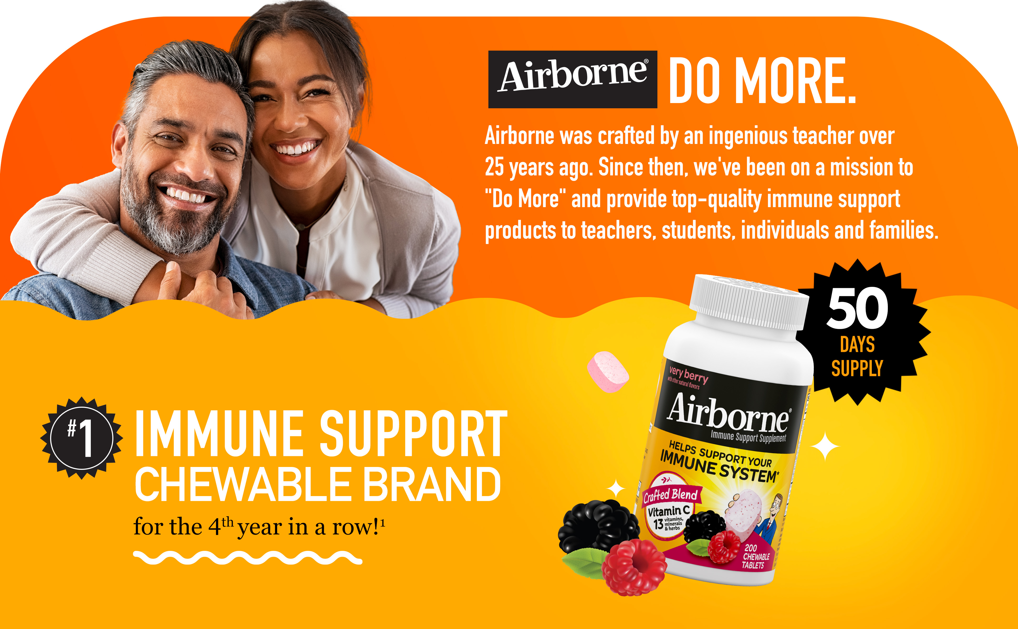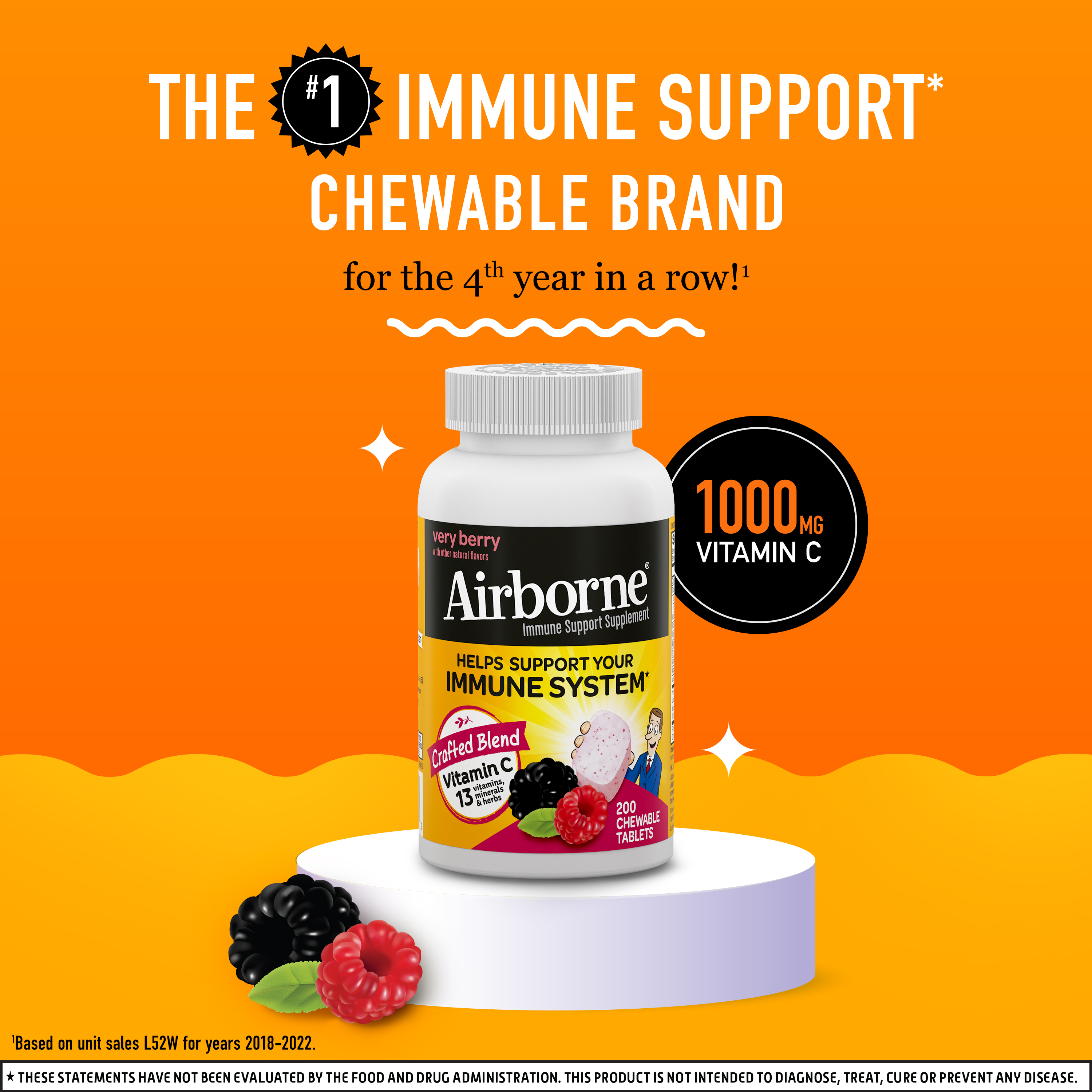 - #1 IMMUNE SUPPORT CHEWABLE BRAND: Airborne is the #1 Immune Support Gummy, Effervescent & Chewable Brand.1 Don’t take our word for it, check out our 5-star rating and read our customer reviews.