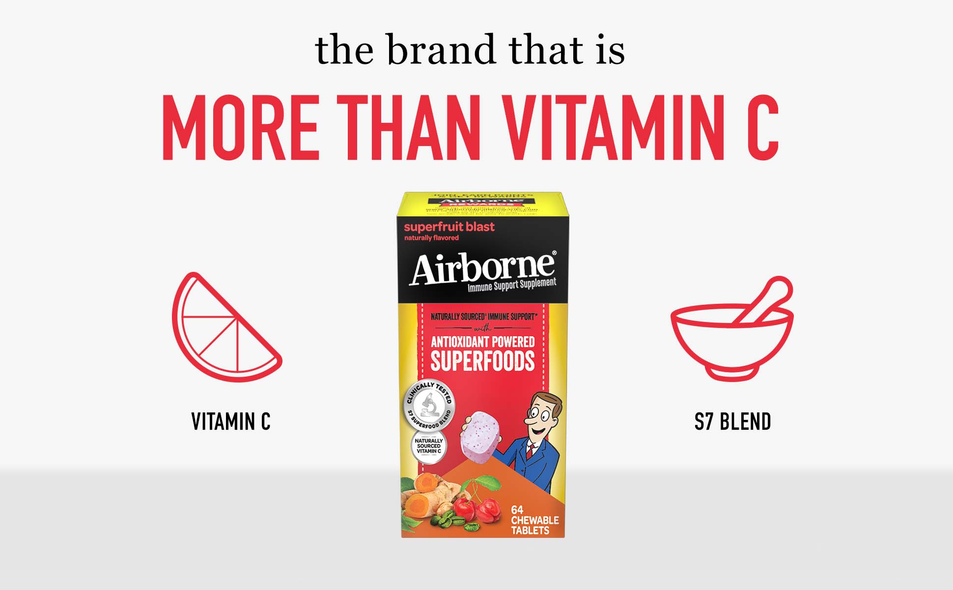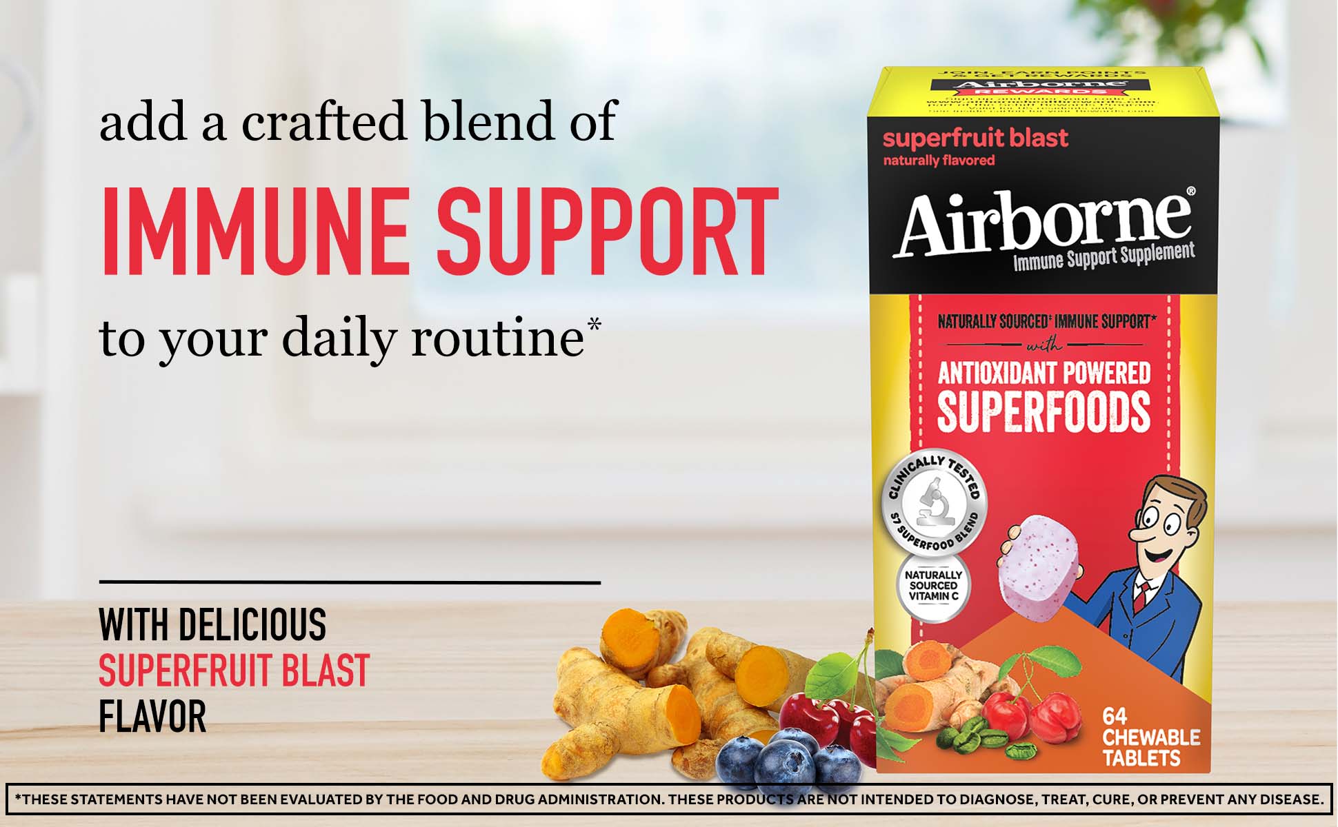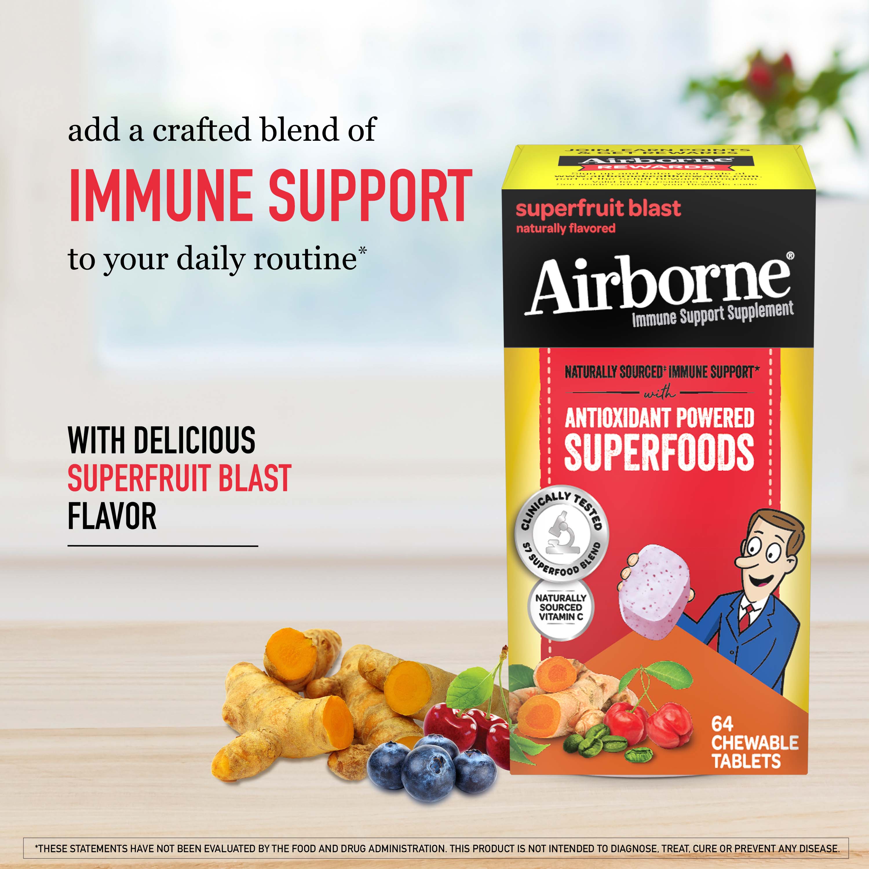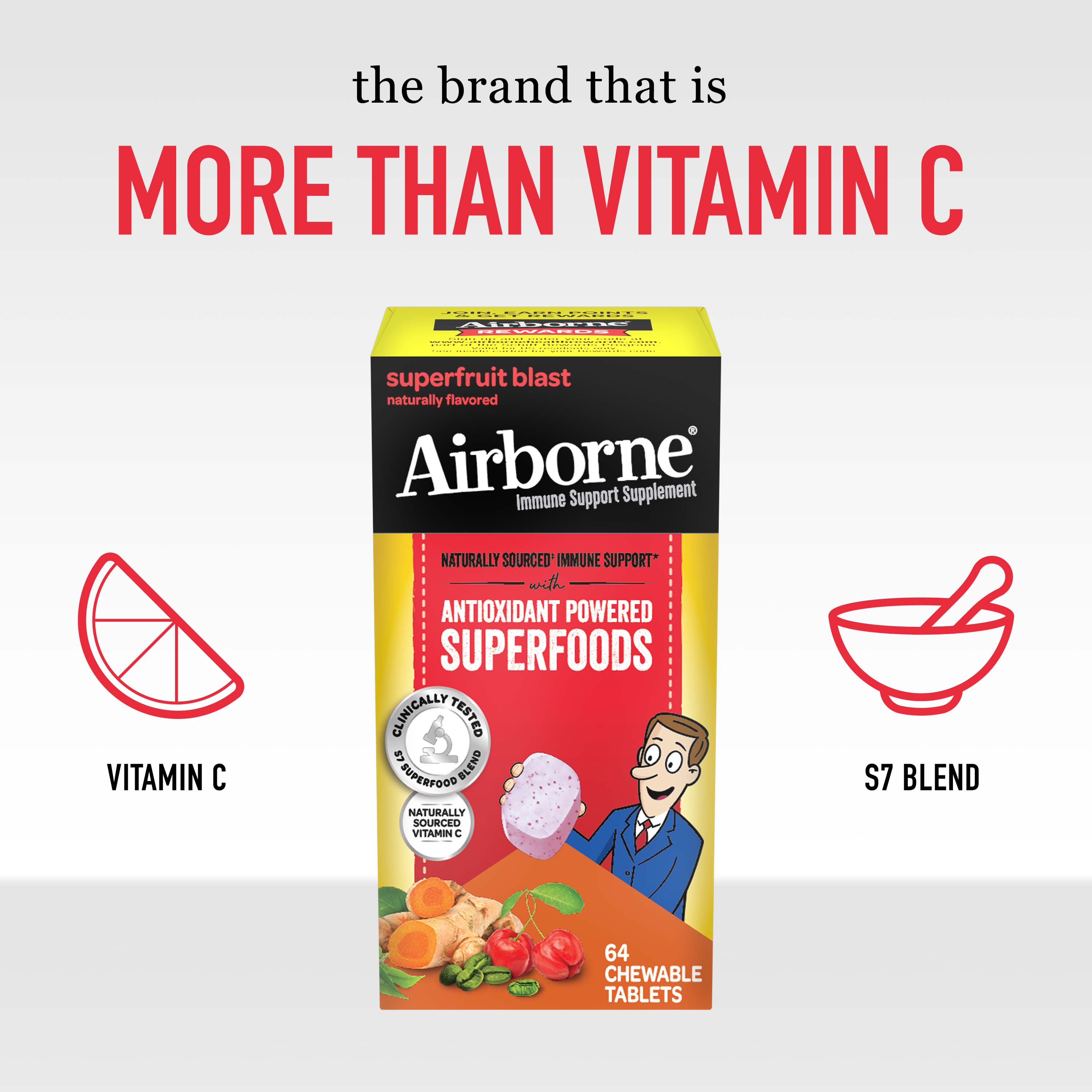 AIRBORNE® Antioxidant Powered Superfoods Chewable Tablets - Superfruit Blast 12/64 ct.
