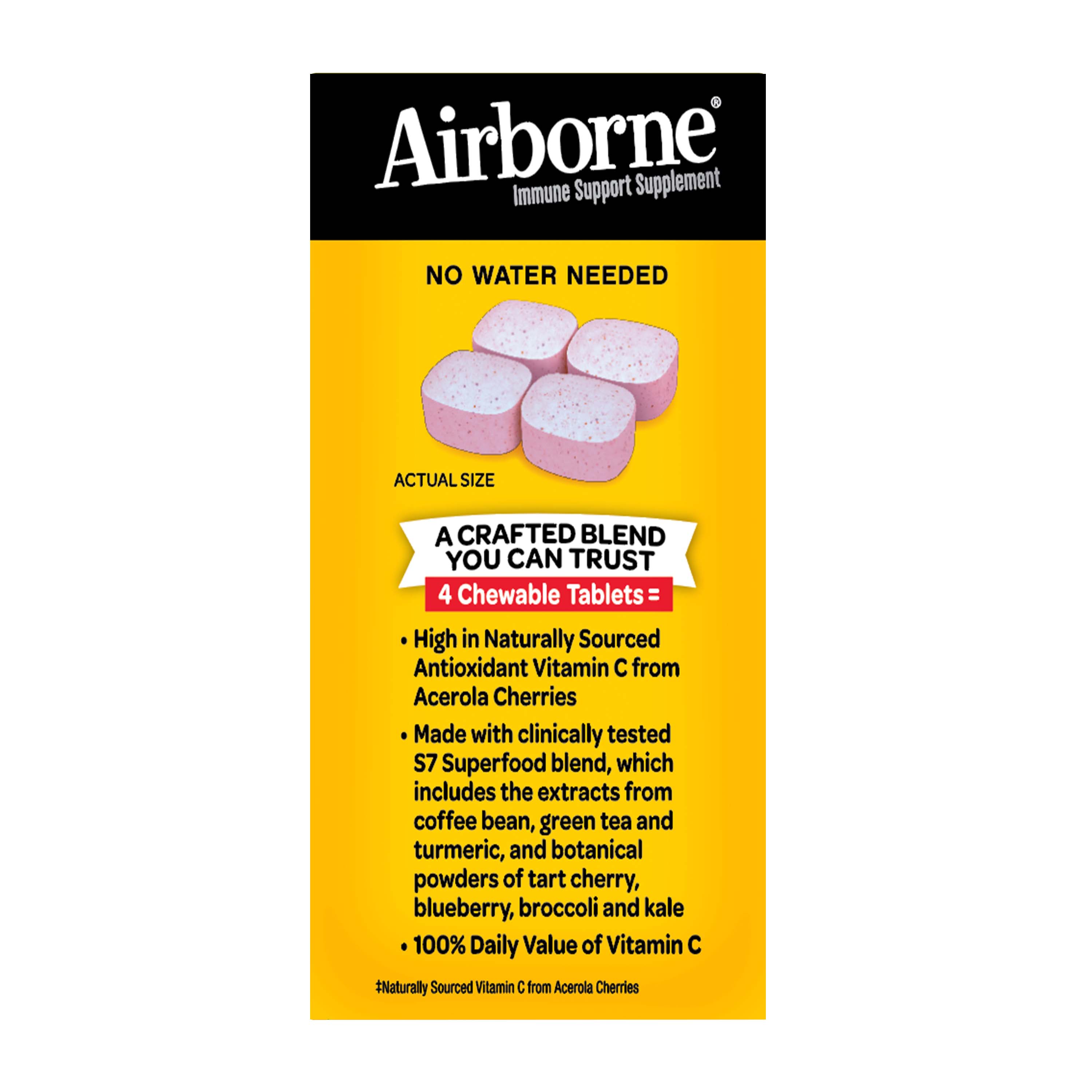 - VITAMIN C 100% DV: Airborne Vitamin C chewable tablets are packed with 100%DV of Vitamin C per serving, which helps support your immune system.*