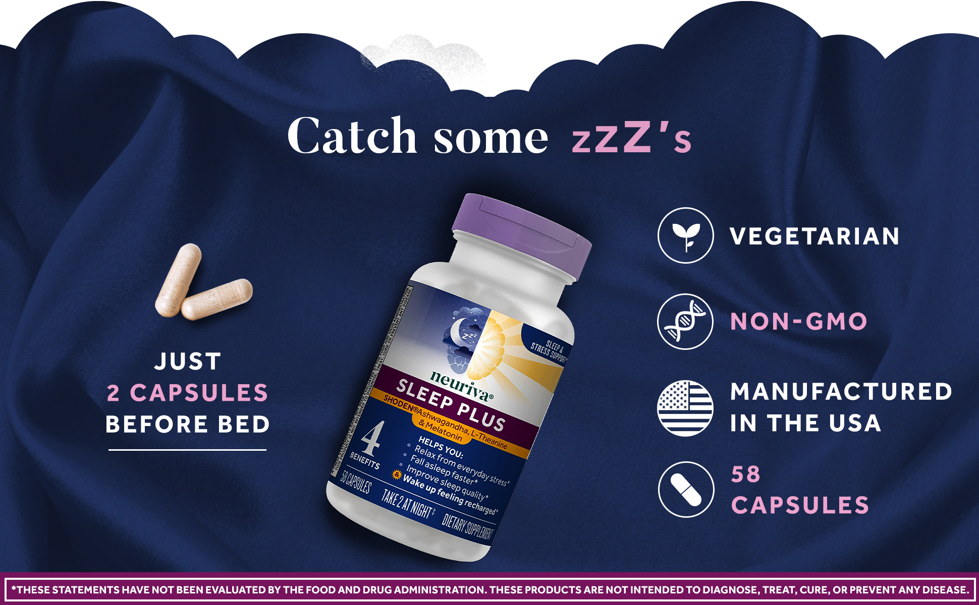 - SLEEP AID: Neuriva Sleep Plus is a sleep support supplement with clinically tested Shoden® Ashwagandha, L-Theanine & Melatonin because we believe sleep marks the beginning of the day, not the end. Try Neuriva Sleep Plus today and experience the hype behind Better Sleep For Better DaysTM*