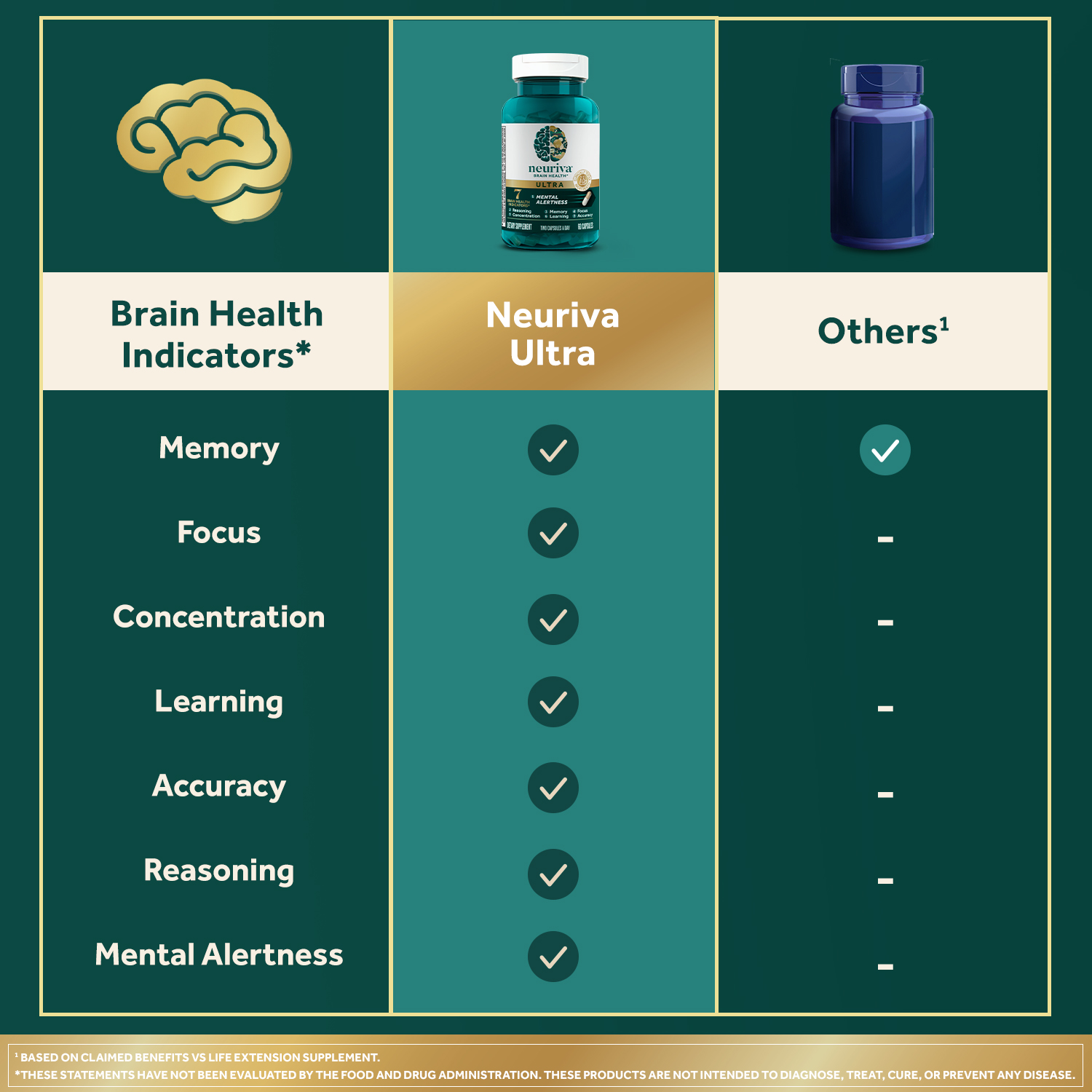 - MEMORY AND FOCUS SUPPLEMENTS FOR ADULTS: Investing in your brain health is essential, Neuriva offers a range of brain health* supplements specially formulated to support 7 indicators of brain health.* If you need a brain boost to help you focus at work or university, Neuriva has you covered with our range of brain supplements designed to promote brain health!