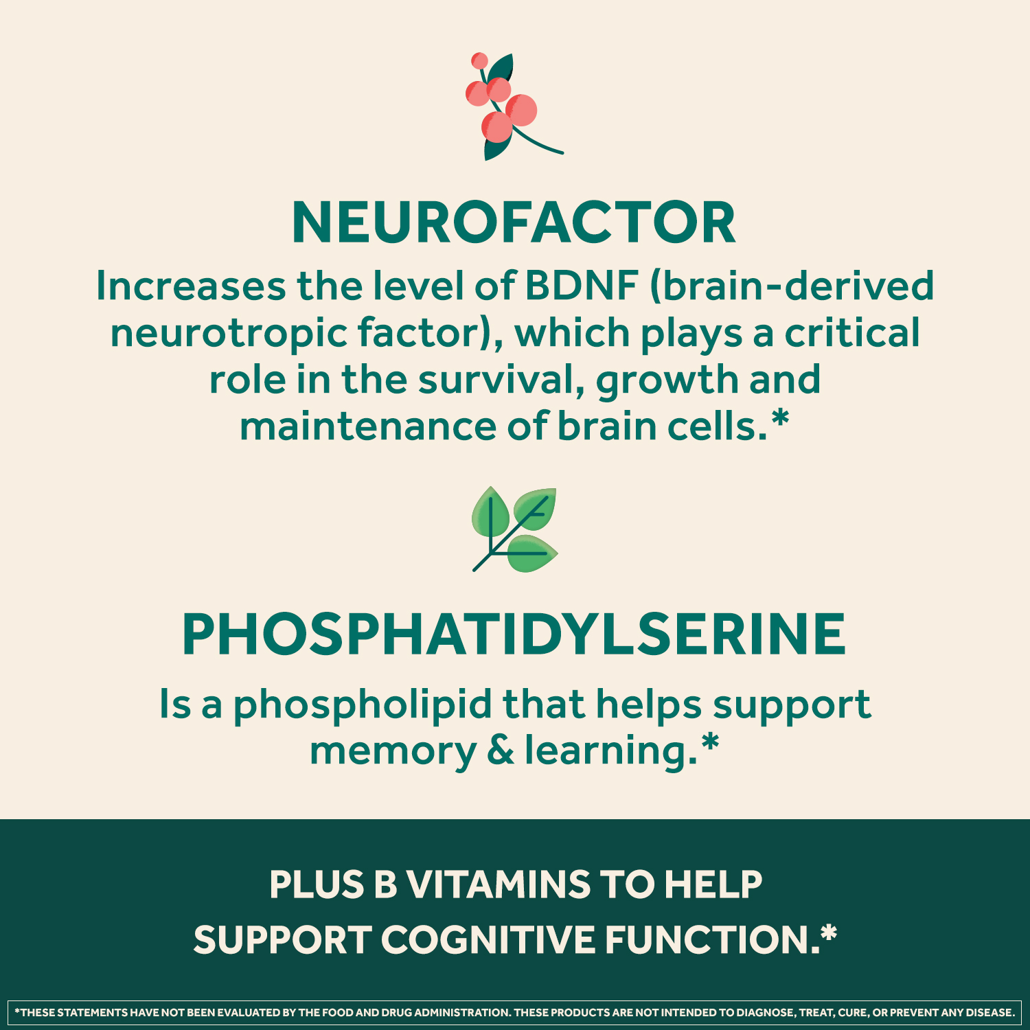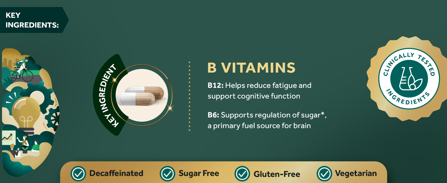 - B VITAMINS: With Vitamin B6, B12, and folic acid to help support brain function.*