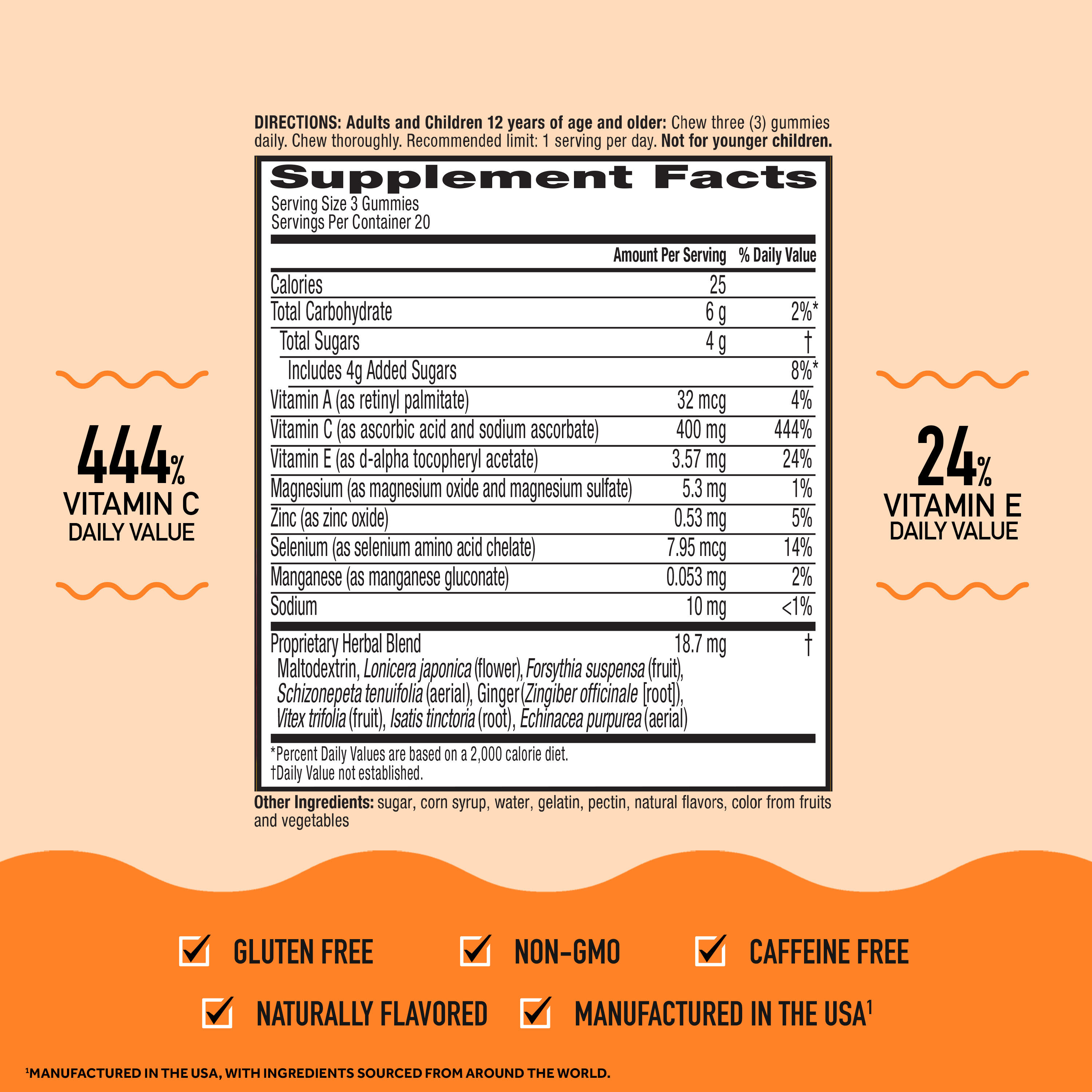 - EXCELLENT SOURCE OF VITAMIN C: Three daily gummies offer 400mg of vitamin C to help support your immune system.*