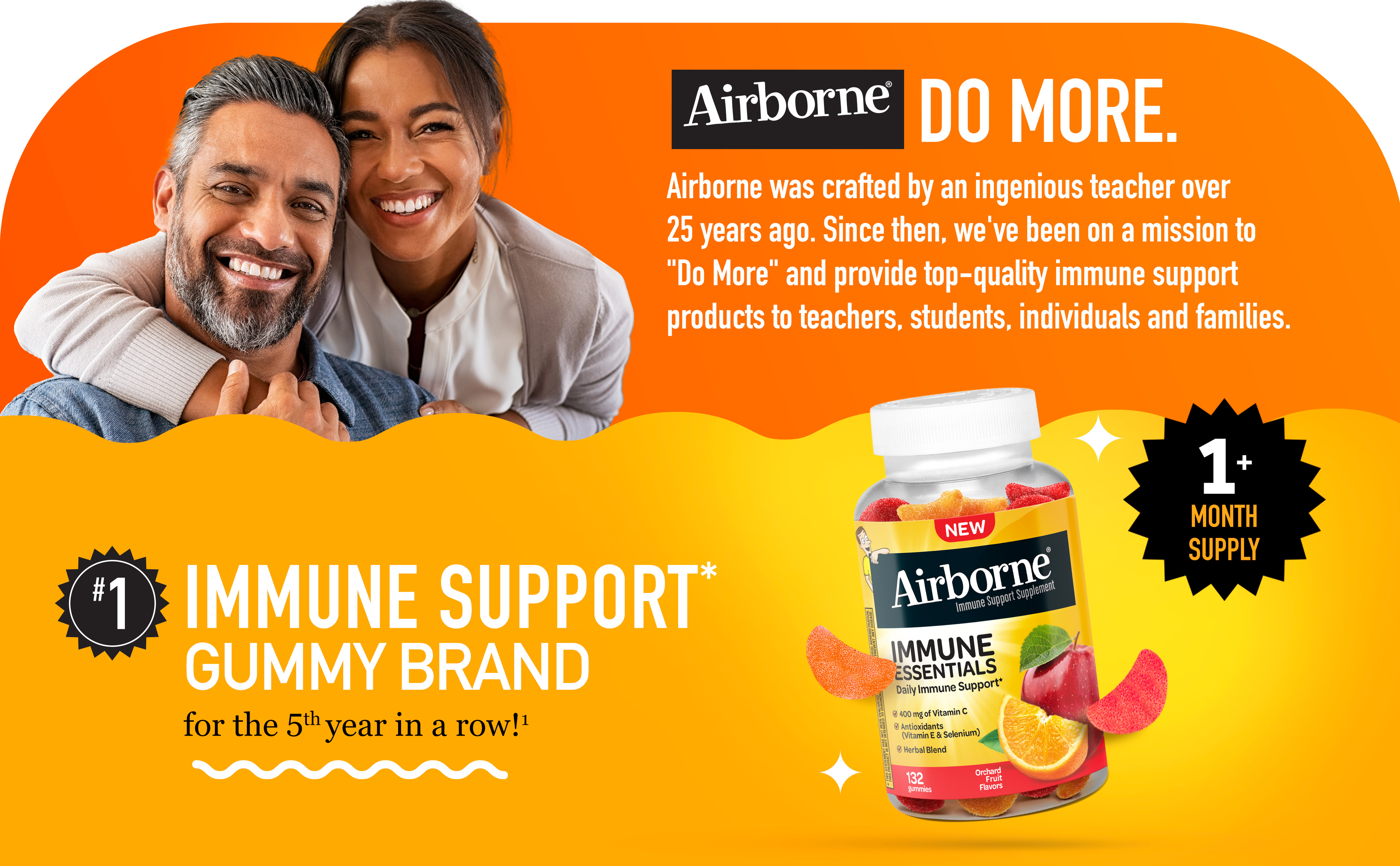 - GRAB & GO GUMMIES: Airborne’s Immune Essentials Gummies are an easy way to put your well-being first and support your immune system.* Chew three daily – whether at home or while on the go!