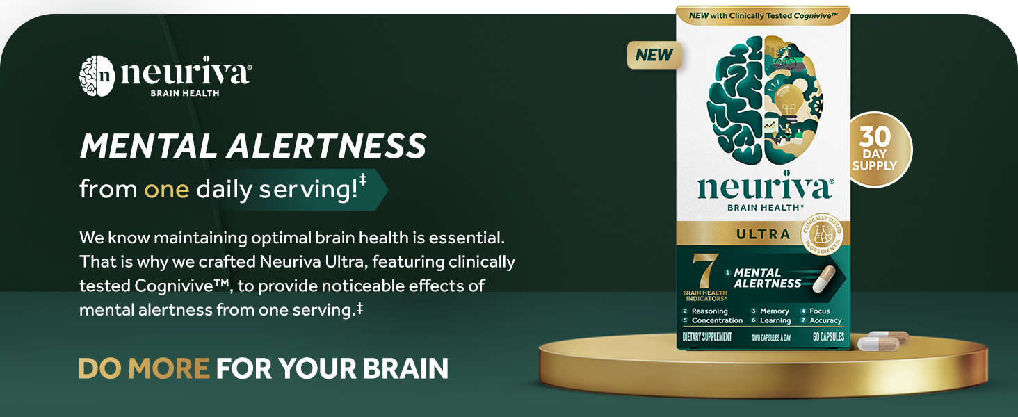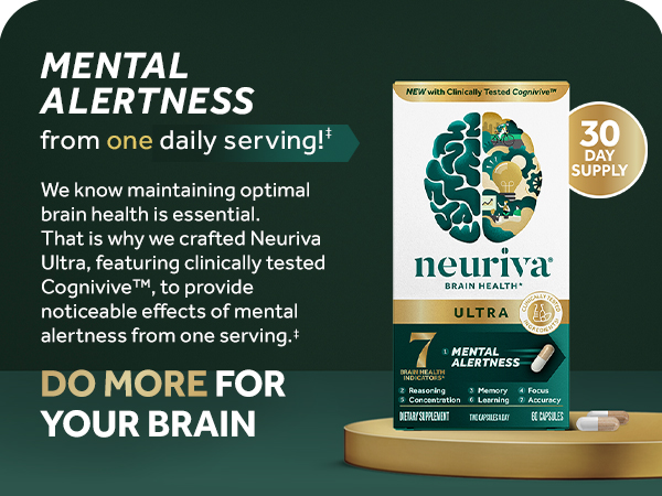 - BRAIN HEALTH SUPPORT FOR ADULTS: Neuriva Ultra contains clinically tested, naturally sourced, ingredients like as CogniviveTM, NeurofactorTM plus Phosphatidylserine, and B Vitamins which, together, promote cognitive function and support memory and focus.*