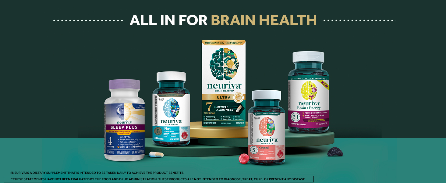 - MEMORY AND FOCUS SUPPLEMENTS FOR ADULTS: Investing in your brain health is essential, Neuriva offers a range of brain health* supplements specially formulated to support 7 indicators of brain health.* If you need a brain boost to help you focus at work or university, Neuriva has you covered with our range of brain supplements designed to promote brain health!