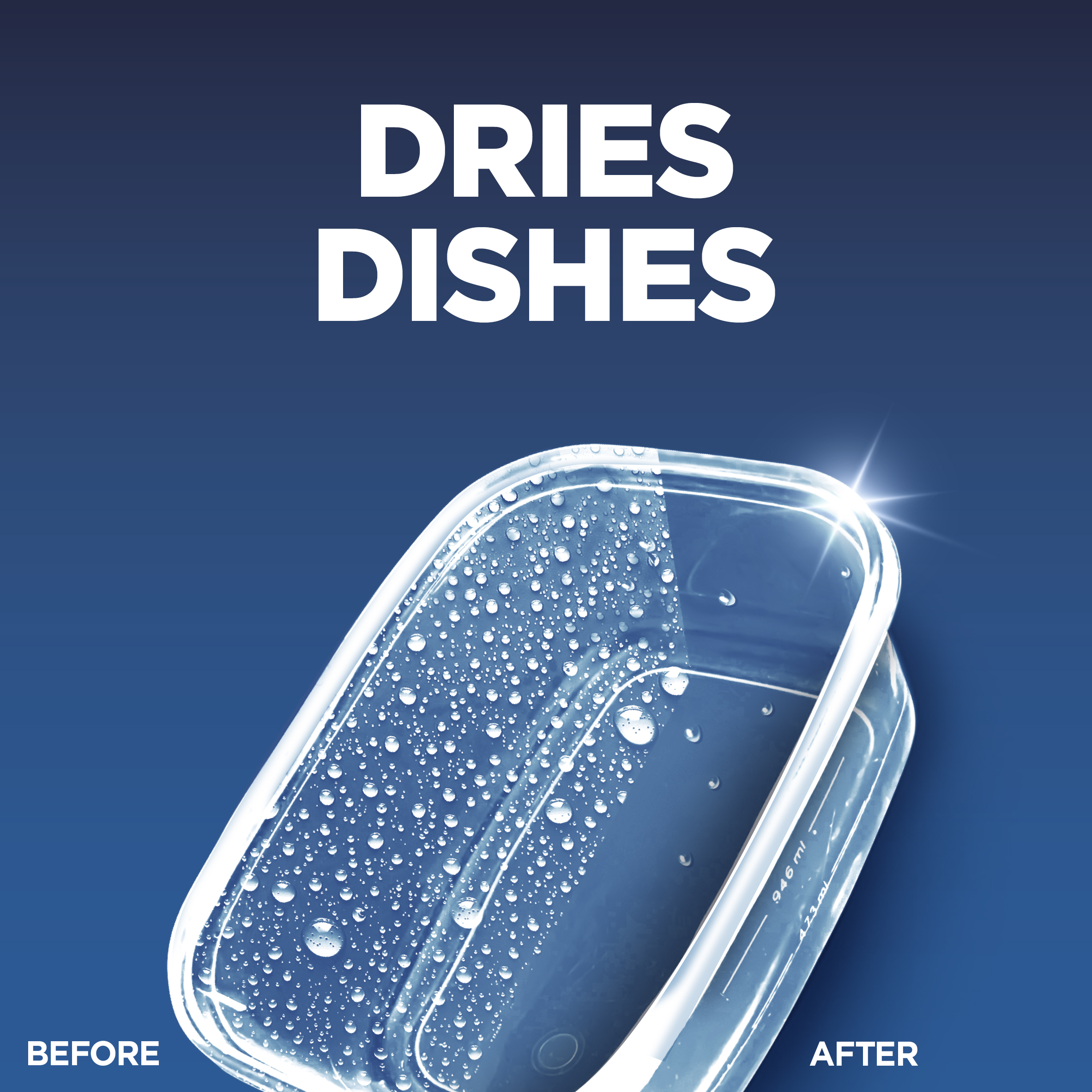 - 100% better drying vs. dish washing detergent alone