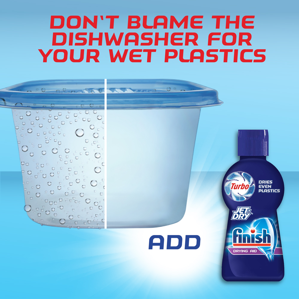 - Fill the rinse agent dispenser in the door of your dishwasher with Finish Jet-Dry Refill monthly for best results