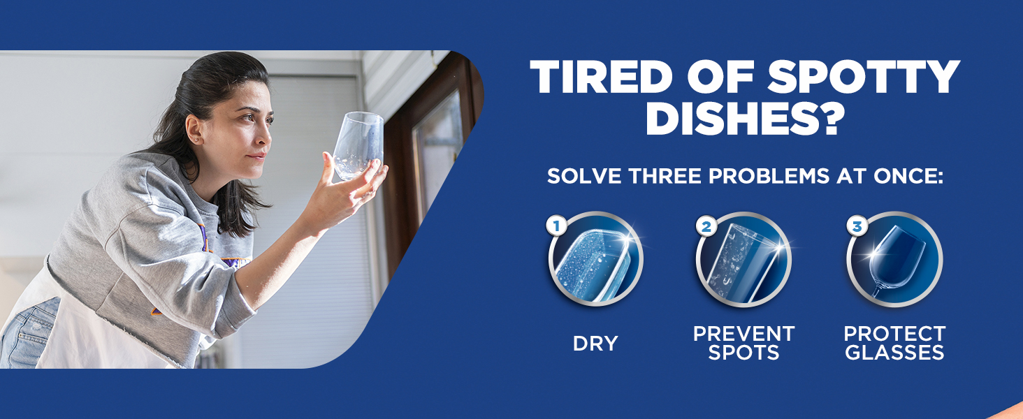 - TACKLES TOUGH RESIDUE: Still seeing hard water marks and residue on your dishes? Finish Jet Dry is specially designed to help prevent residue and spots, giving you shelf-ready dishes.