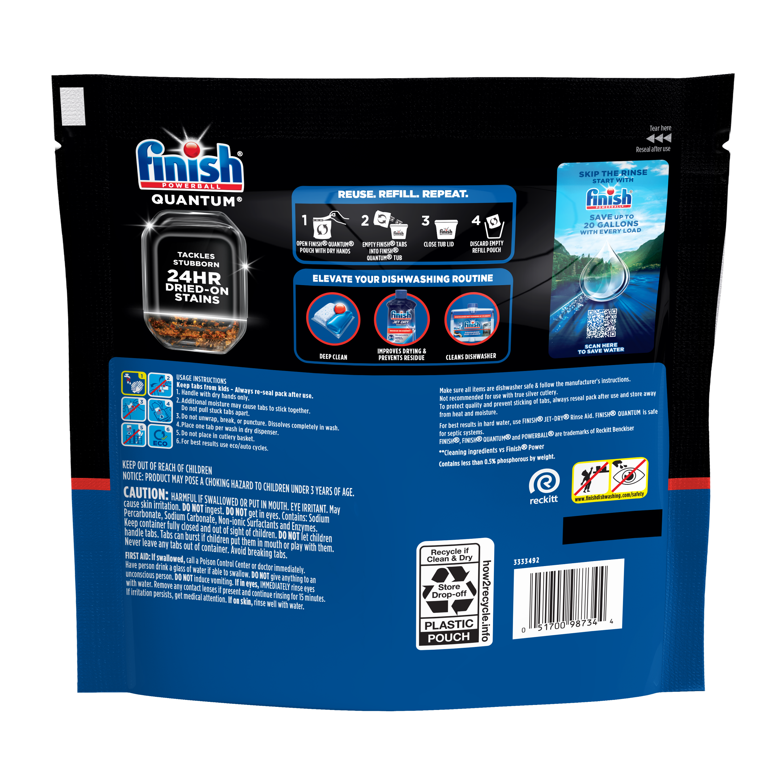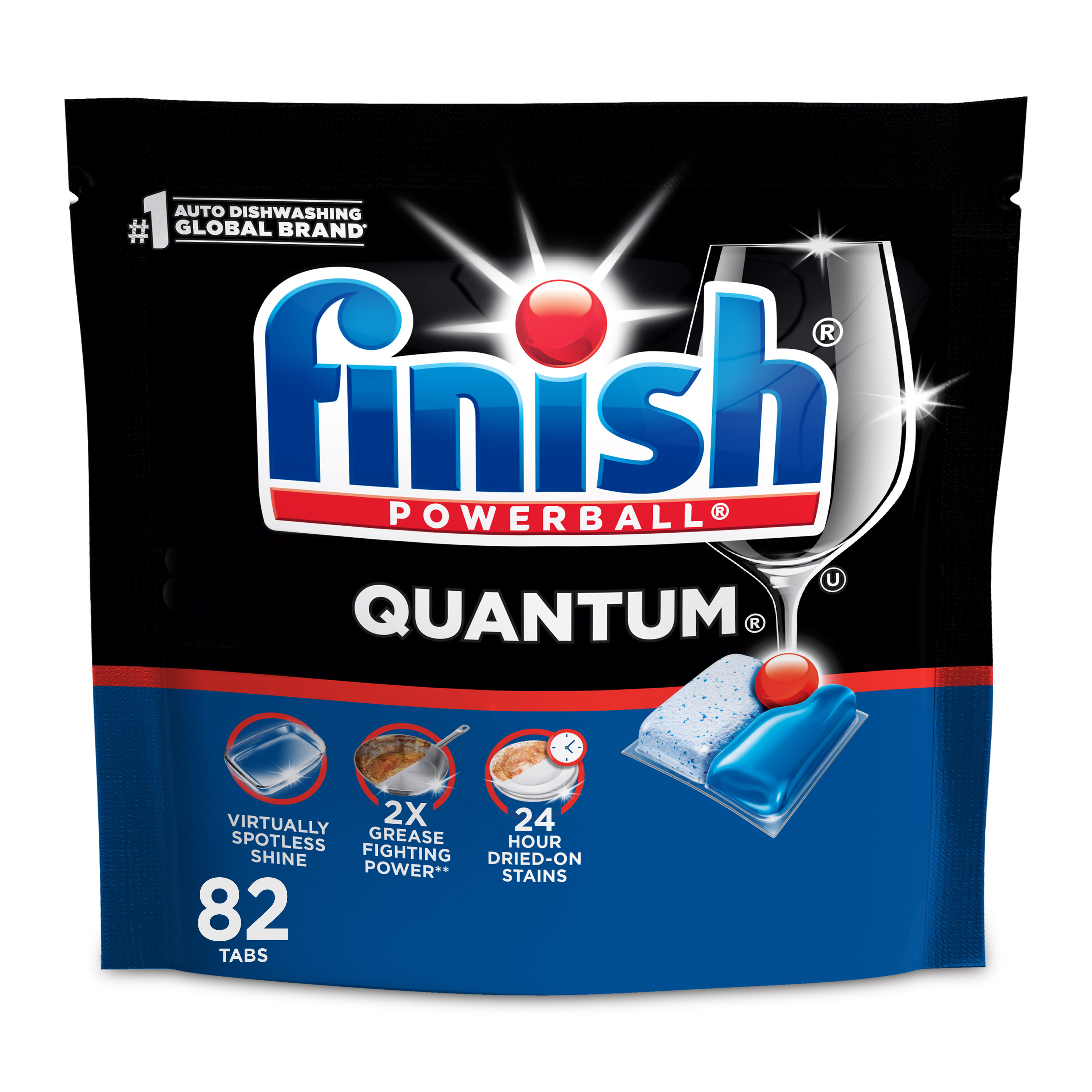 | Product Description | Finish Quantum gives you the next level of clean. Three separate fast-dissolving chambers deliver three power actions: break down and lift toughest messes, grease cutting power, and a finishing boost of shine. Because there’s clean. Then there’s so clean it shines. The three separate chamber tab delivers the cleaning power of an overnight soak, scrubbing away even 24-hour dried on food! Advanced powder with bleach seeks out and cleans tough stains like tea and coffee. Our quick dissolving tab washes away residue for an amazing shine. |