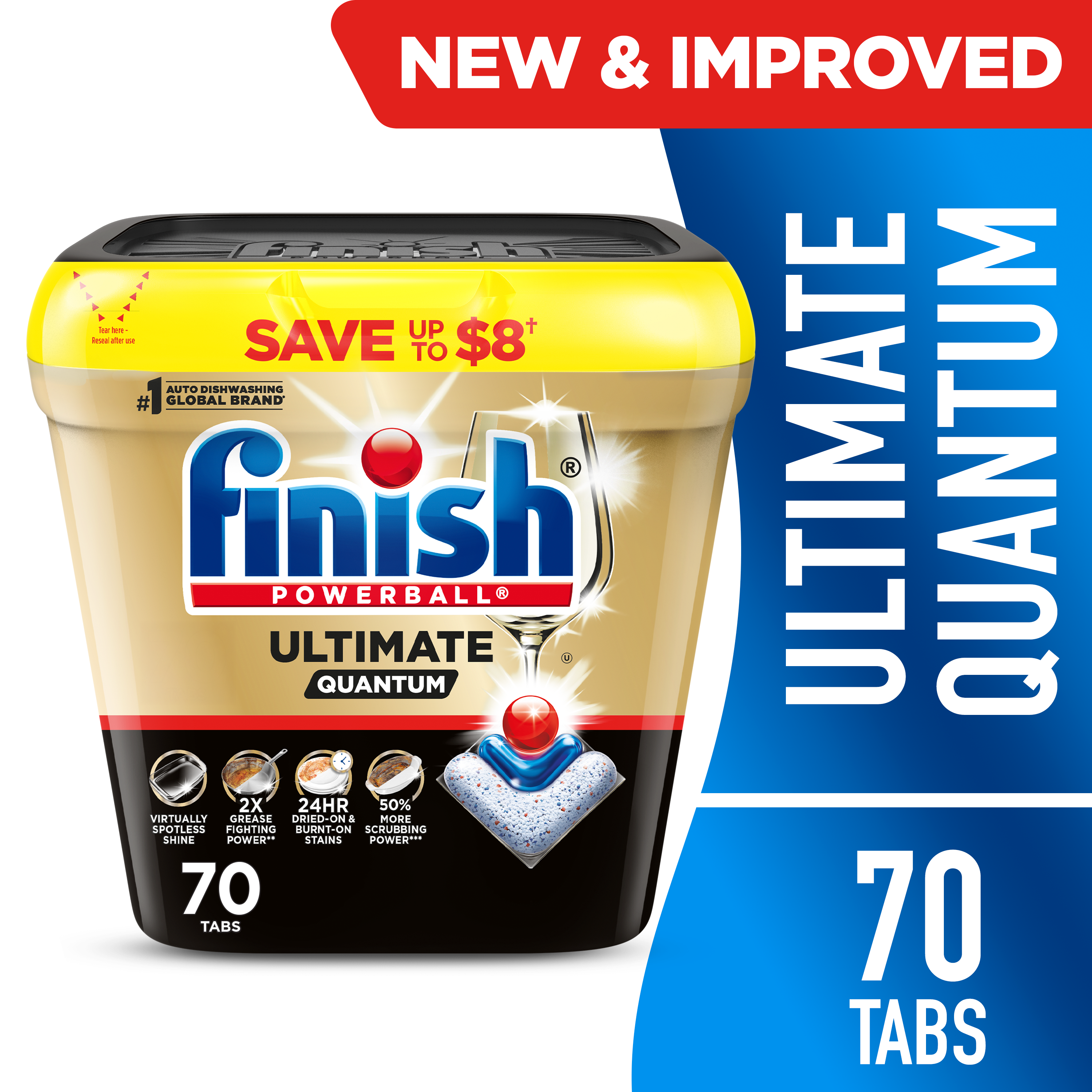 - IMPROVED FORMULA: Finish Ultimate Quantum dishwasher pods deliver 50% MORE CLEANING POWER* with an upgraded formula designed to remove stubborn stains and deliver our best clean yet.