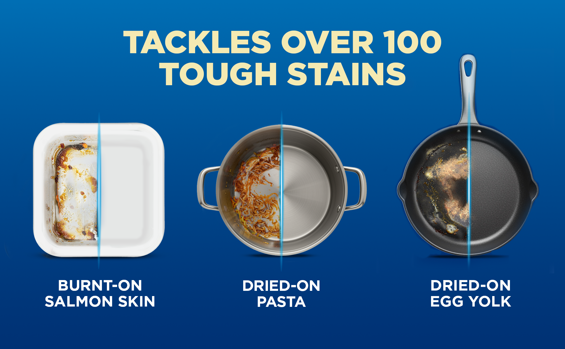 - MADE FOR THE TOUGHEST LOADS: Designed to tackle over 100 stubborn stains, from burnt-on salmon skin to dried-on pasta and egg yolk, with powerful cleaning that works great even in hard water and older machines.
