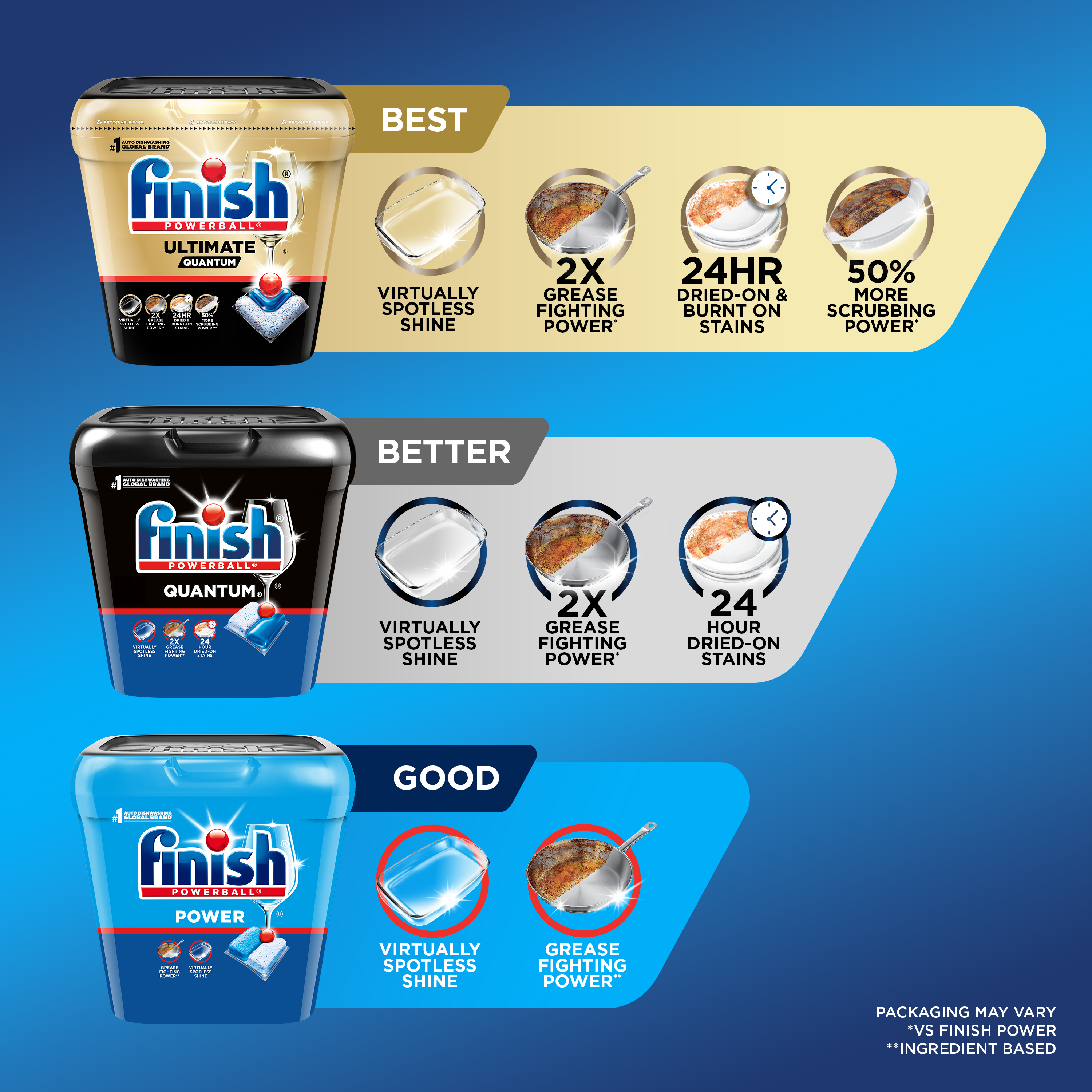 - EVERYDAY DISHWASHER PODS: Finish Power is great for tackling everyday greasy steel pans, wine glasses, plastic meal prep containers, glass storage containers, and more.