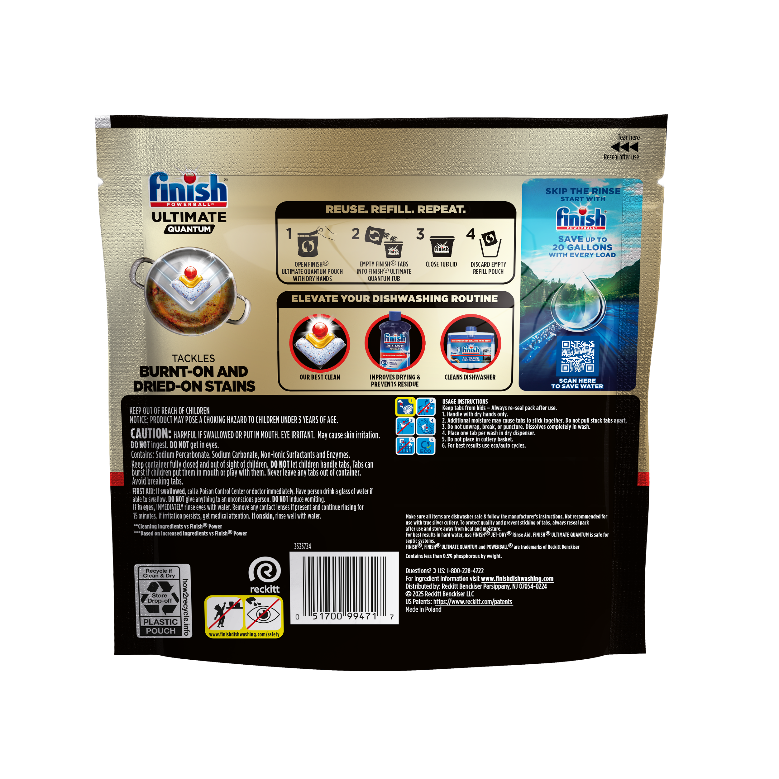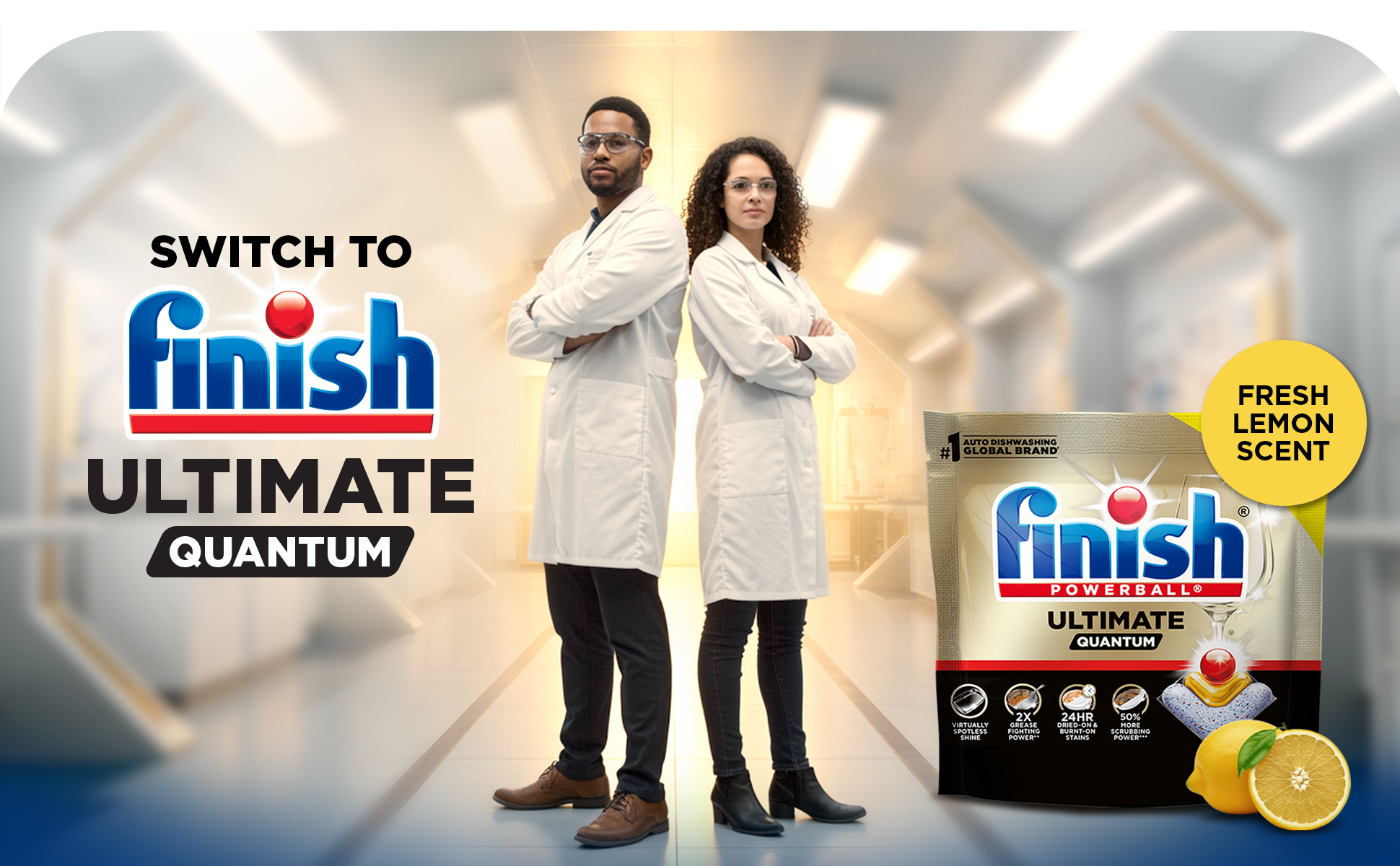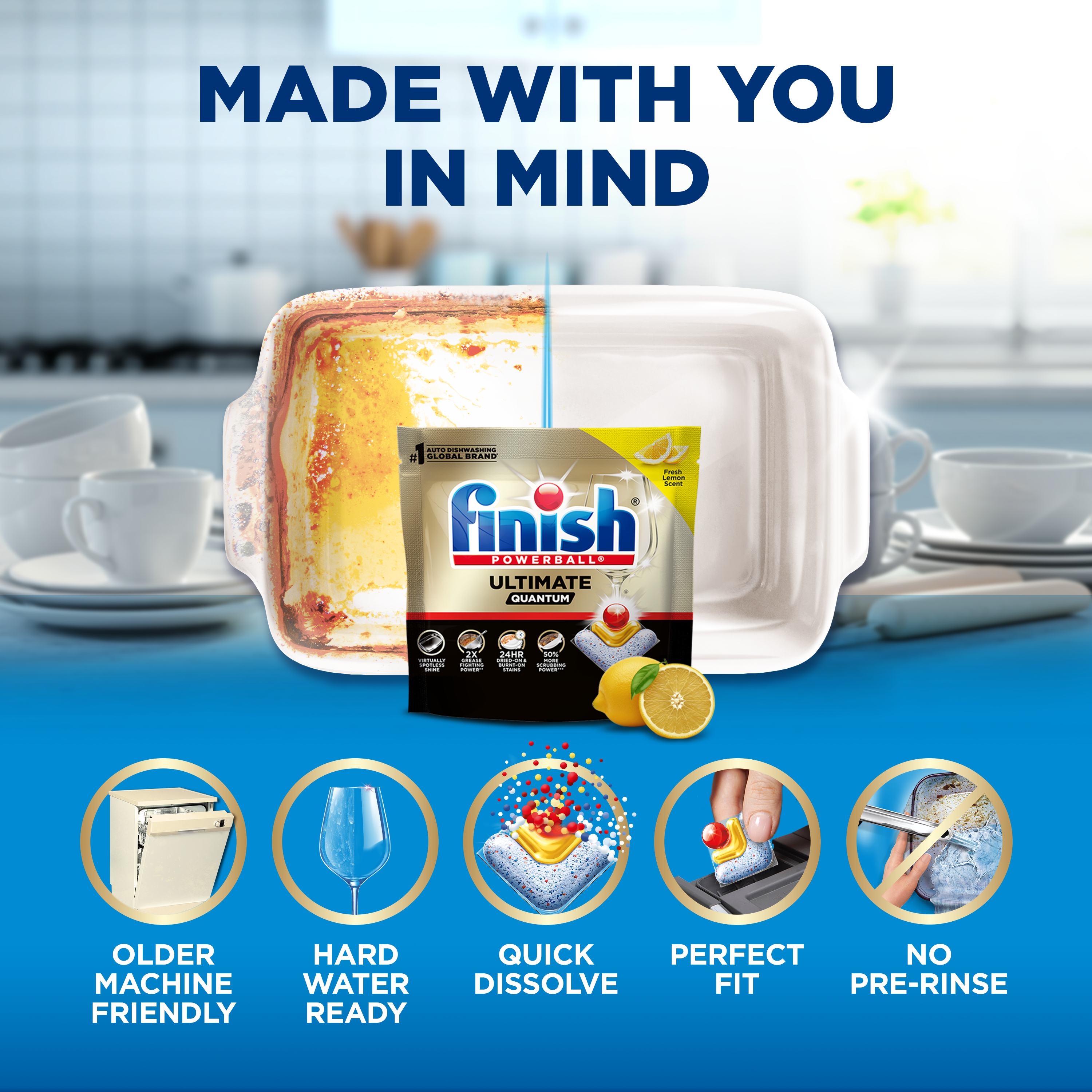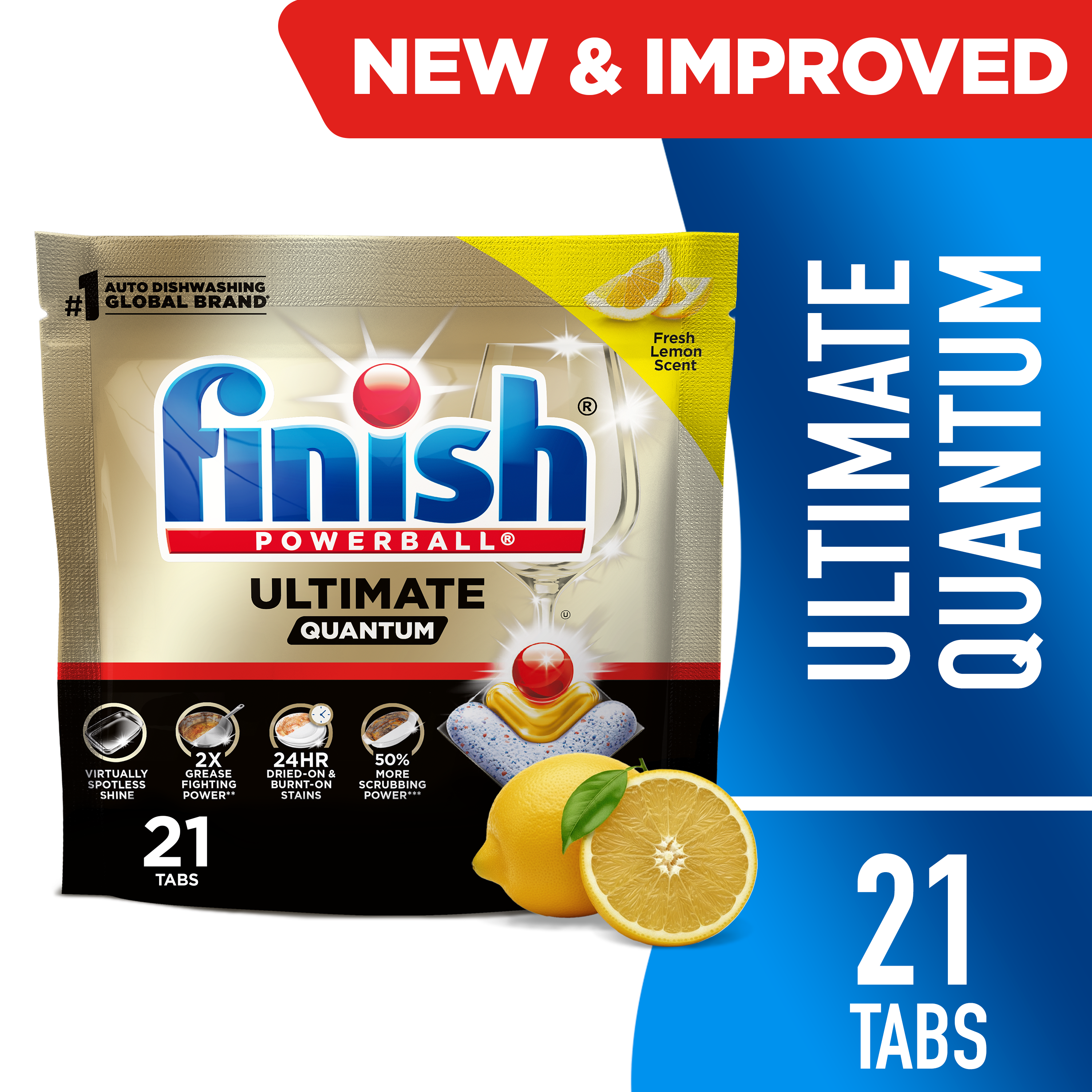- OUR MOST POWERFUL CLEAN: Finish Ultimate Quantum delivers superior cleaning performance* with 24HR dried-on and burnt-on stain removal, 50% more scrubbing power**, 2X grease-fighting power***, and virtually spotless shine for your toughest loads.
